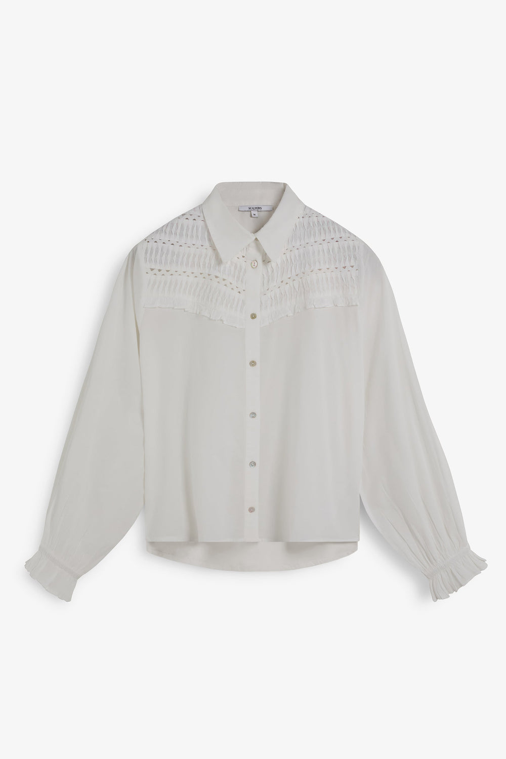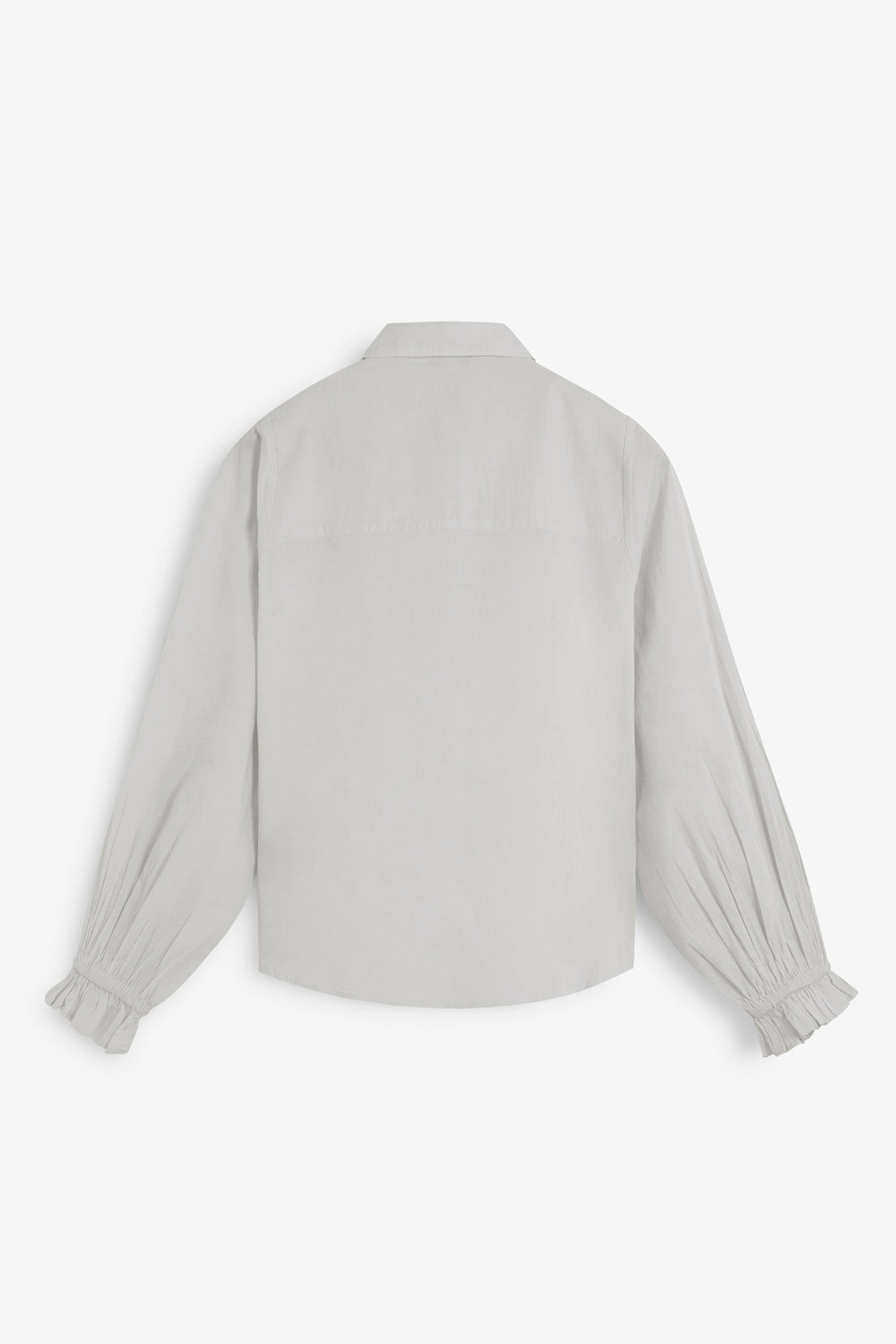 Blouse made of 100% cotton fabric. Regular fit. Classic collar. Yoke detail. Long sleeves with elasticated cuffs with slight frill. Button fastening.