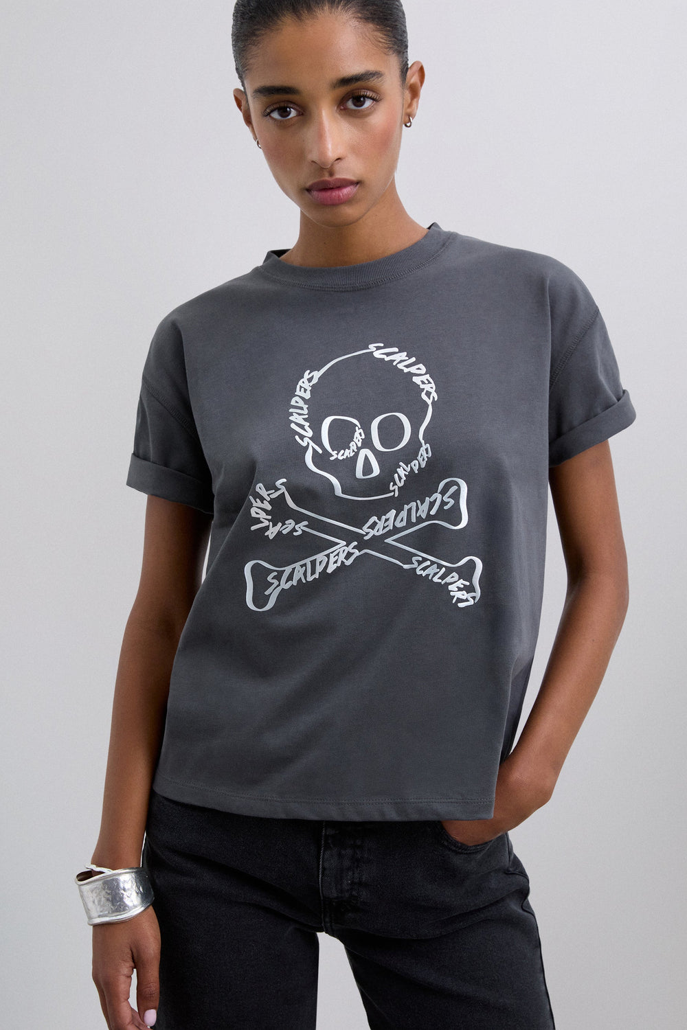 T-shirt made of 100% cotton. Regular fit. Front skull print. Round neck. Short sleeve. Stitching detail on the back.