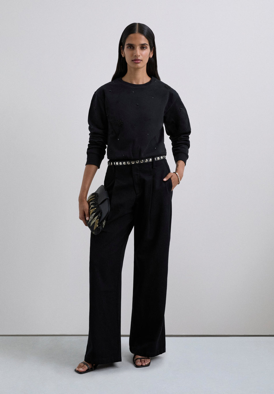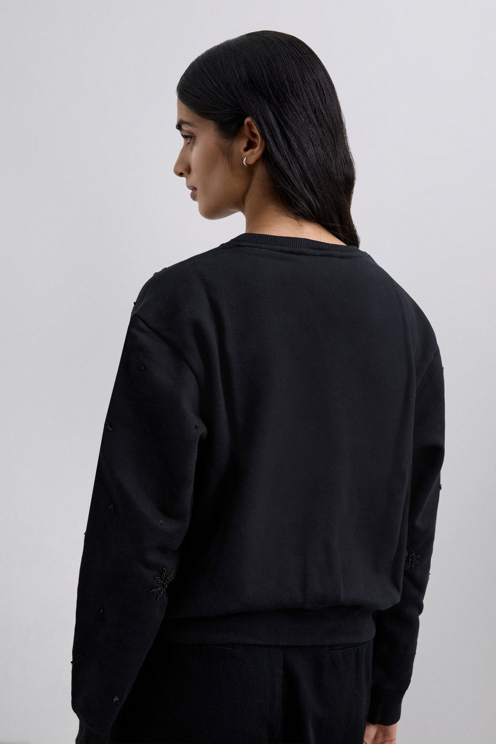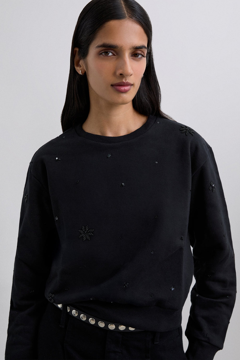 RHINESTONE EMBROIDERED SWEATSHIRT