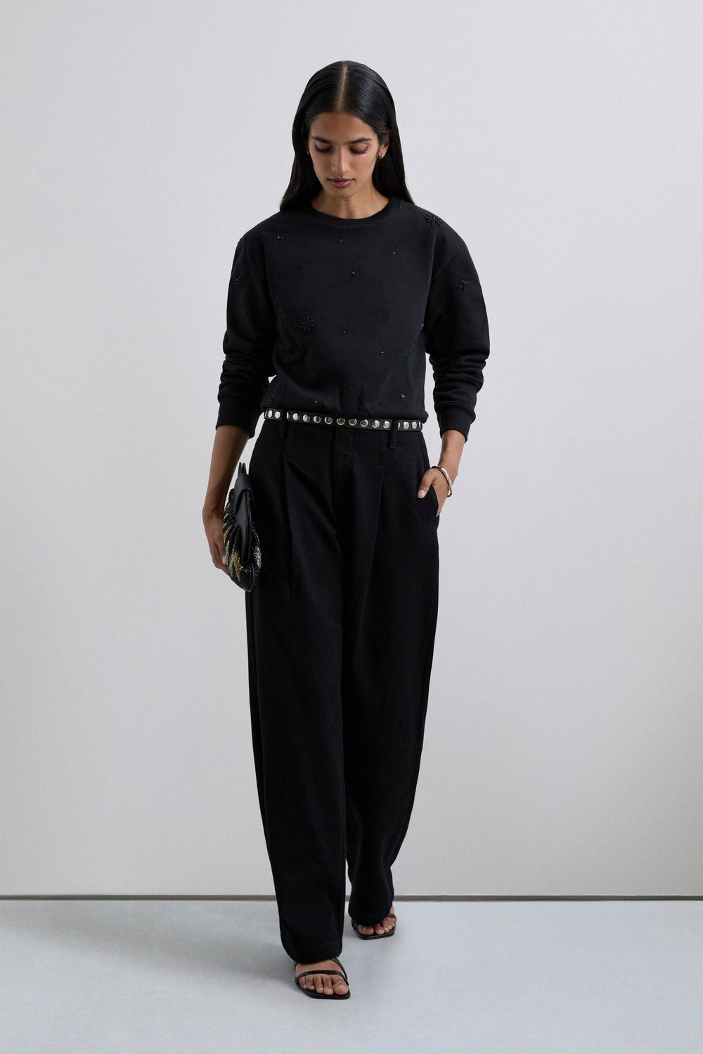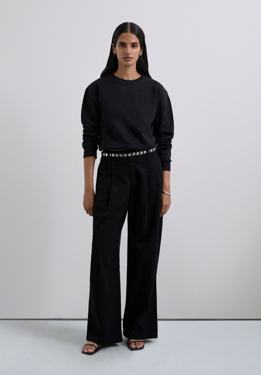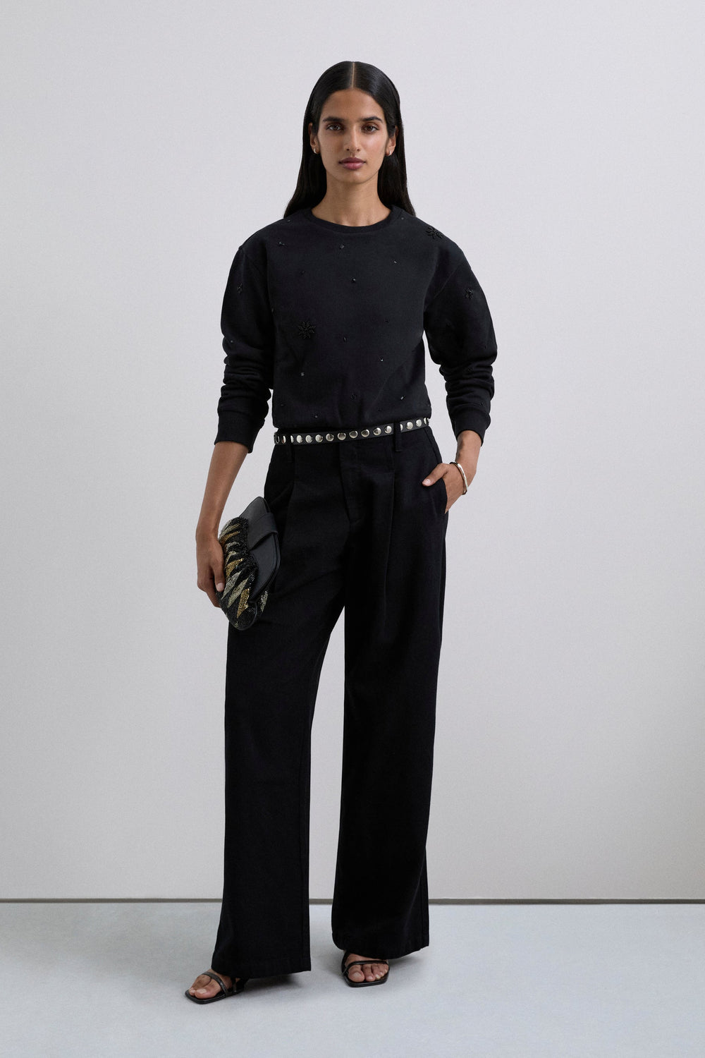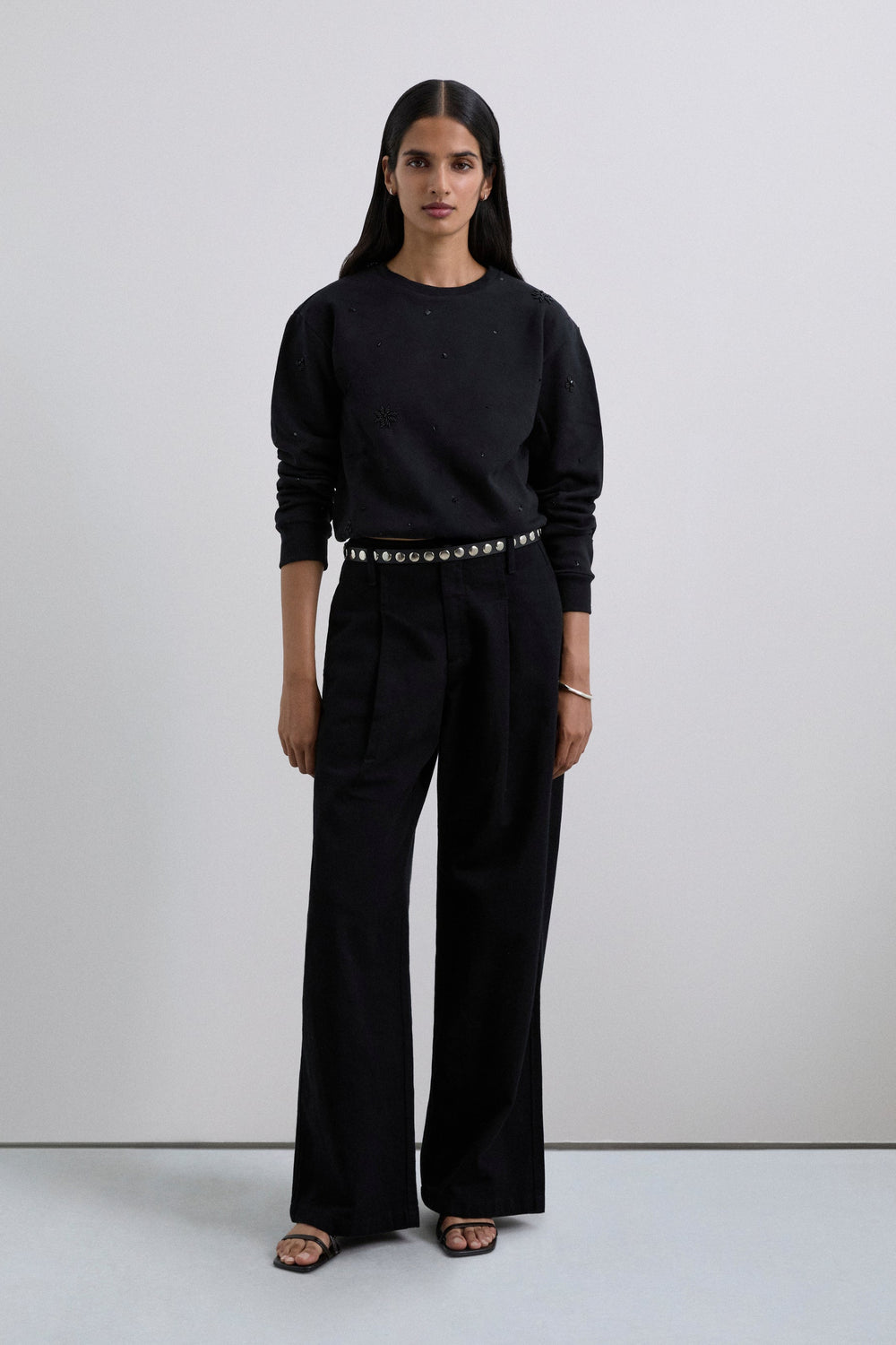 RHINESTONE EMBROIDERED SWEATSHIRT