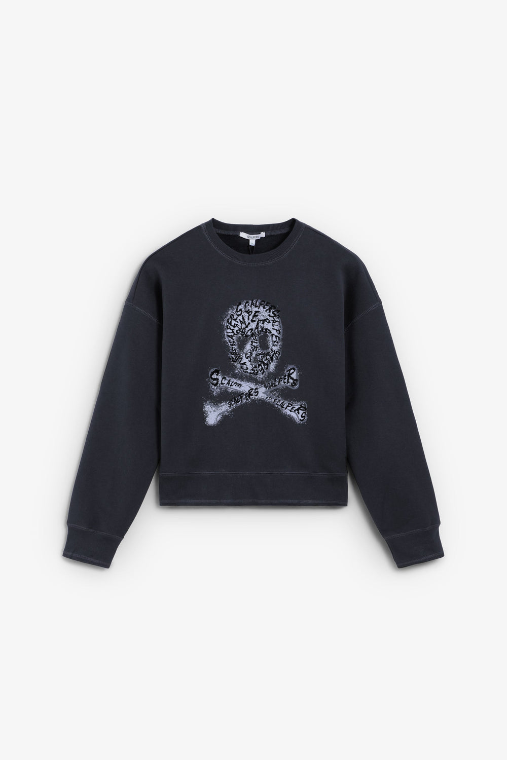 Sweatshirt made of 100% organic cotton. Regular fit, round neck and long sleeves with ribbed cuffs. Skull details with flock print on front.