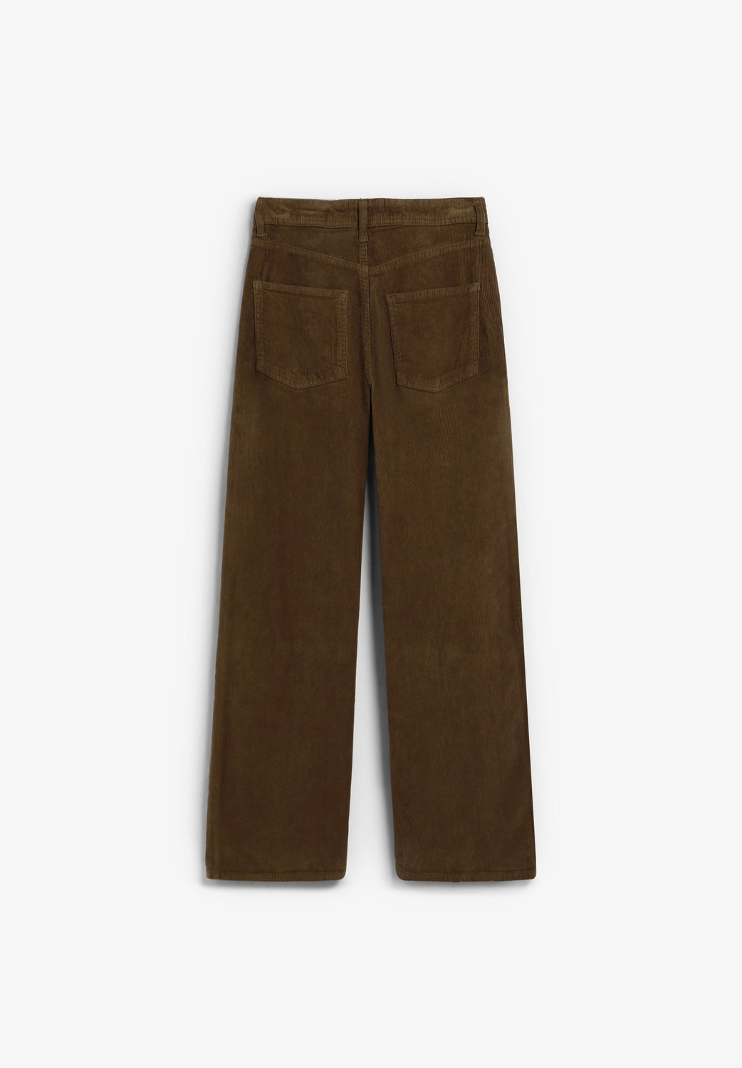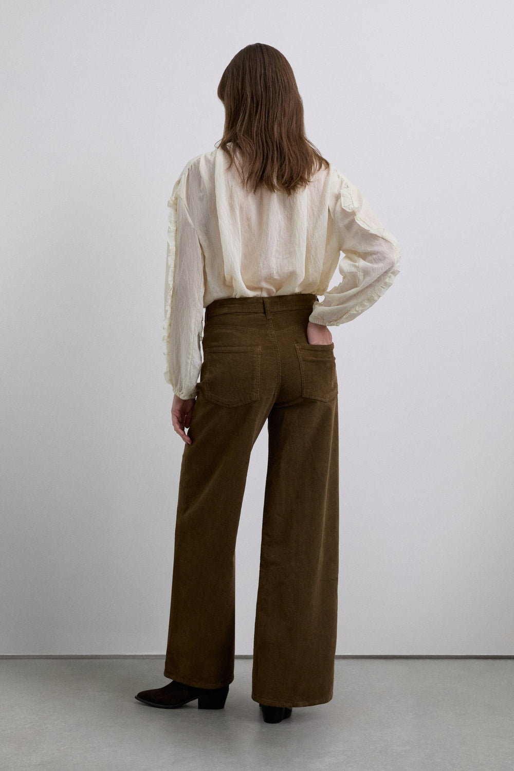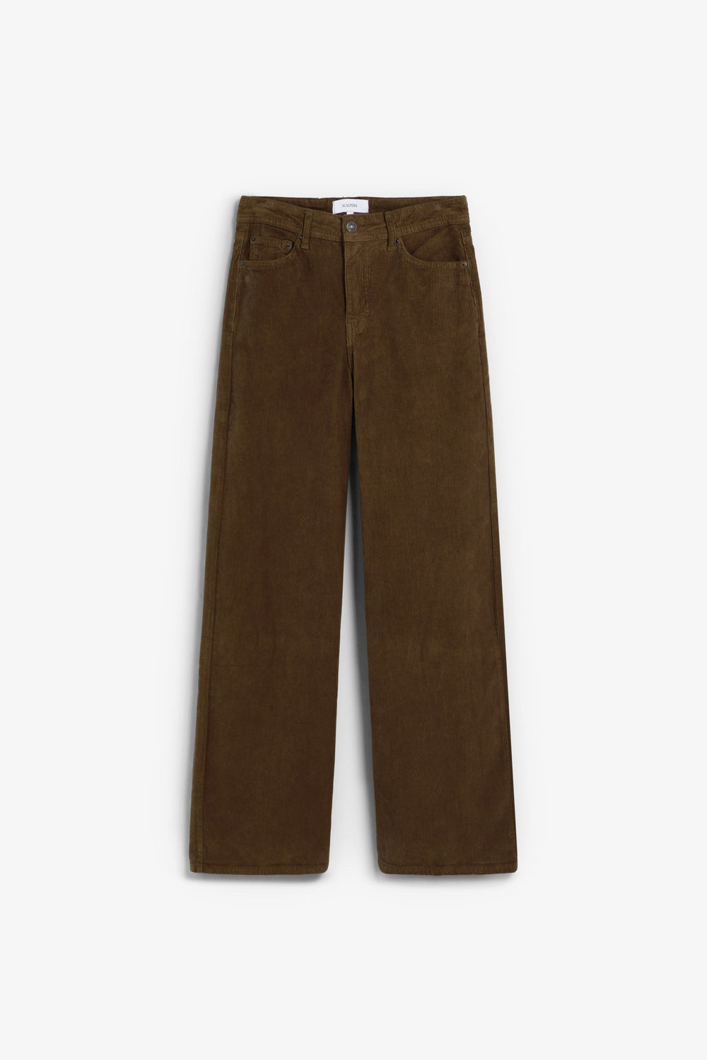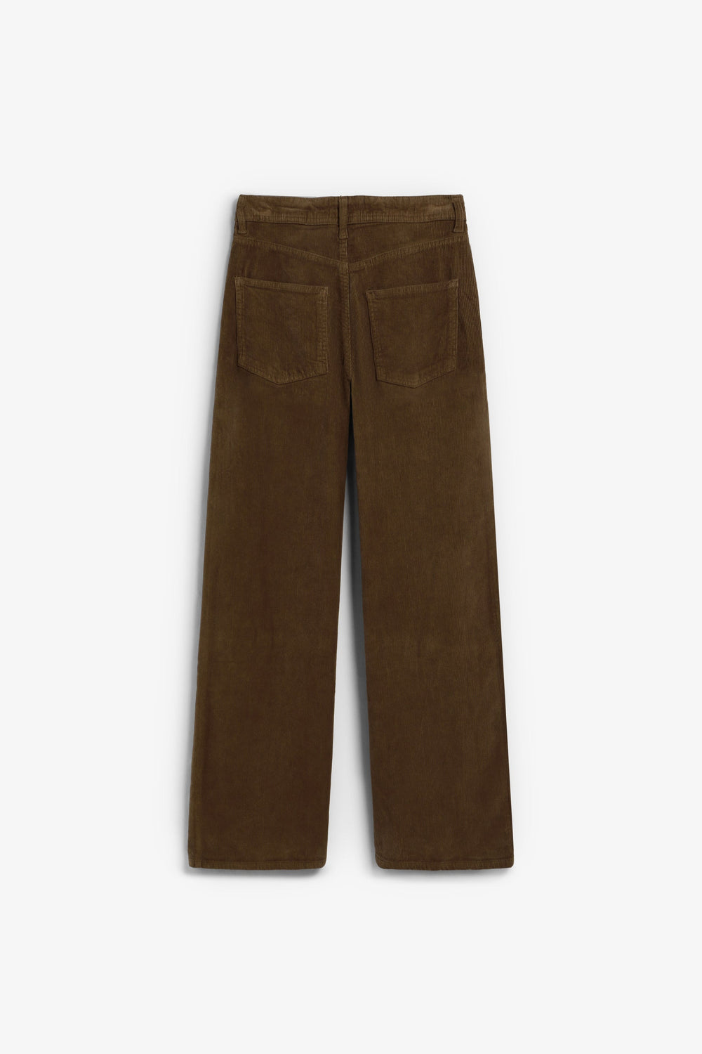 Trousers made of a cotton blend. Mid-rise and straight cut. Zip and button fastening. Front and back pockets.