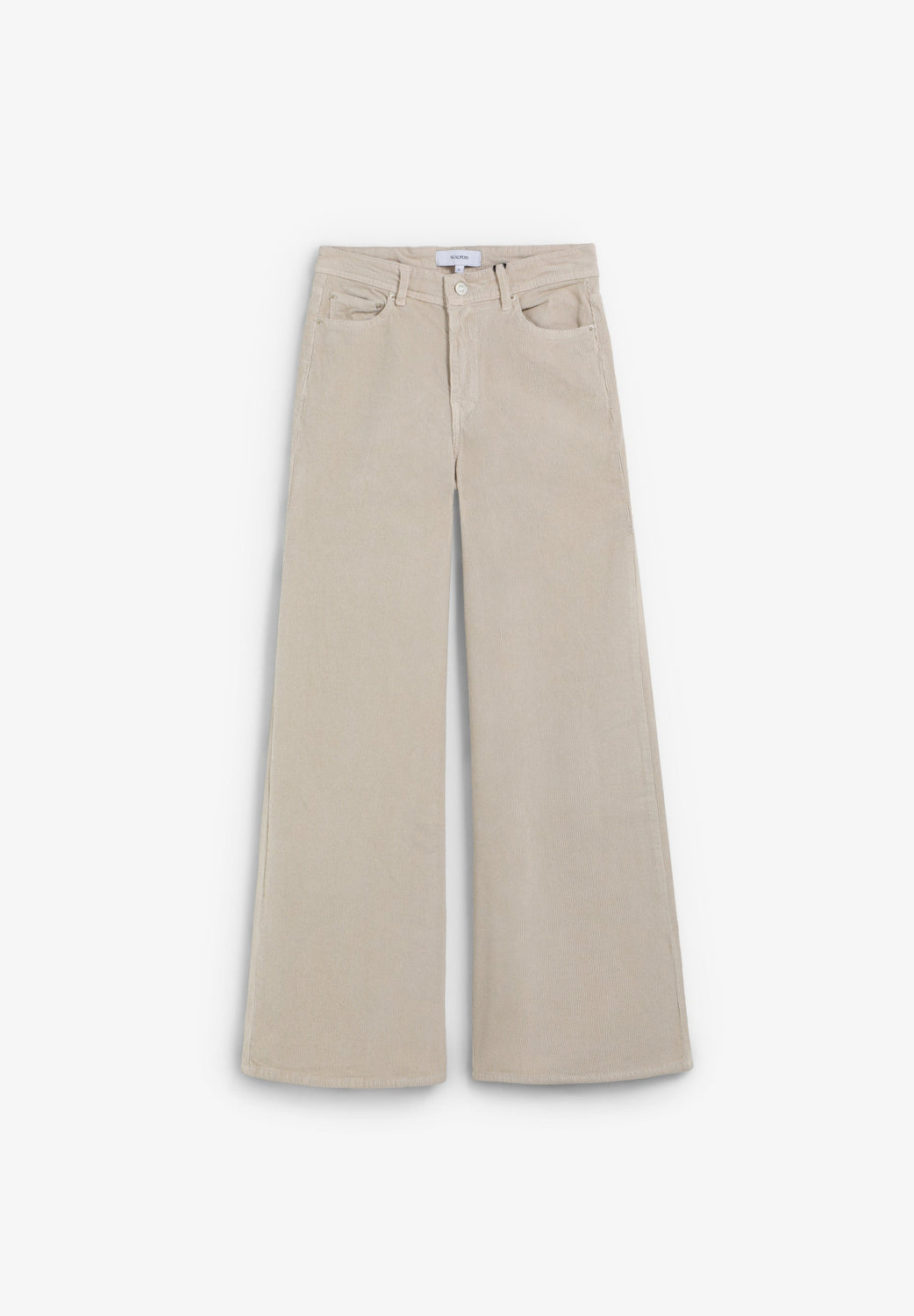 Trousers made of a cotton blend. Mid-rise and straight cut. Zip and button fastening. Front and back pockets.