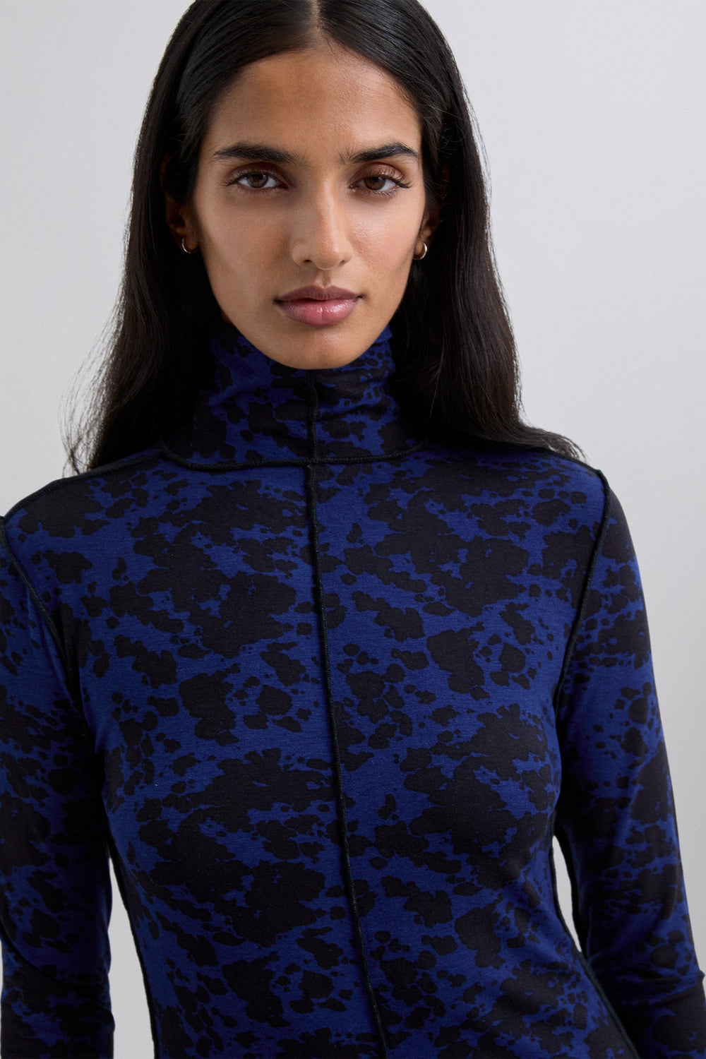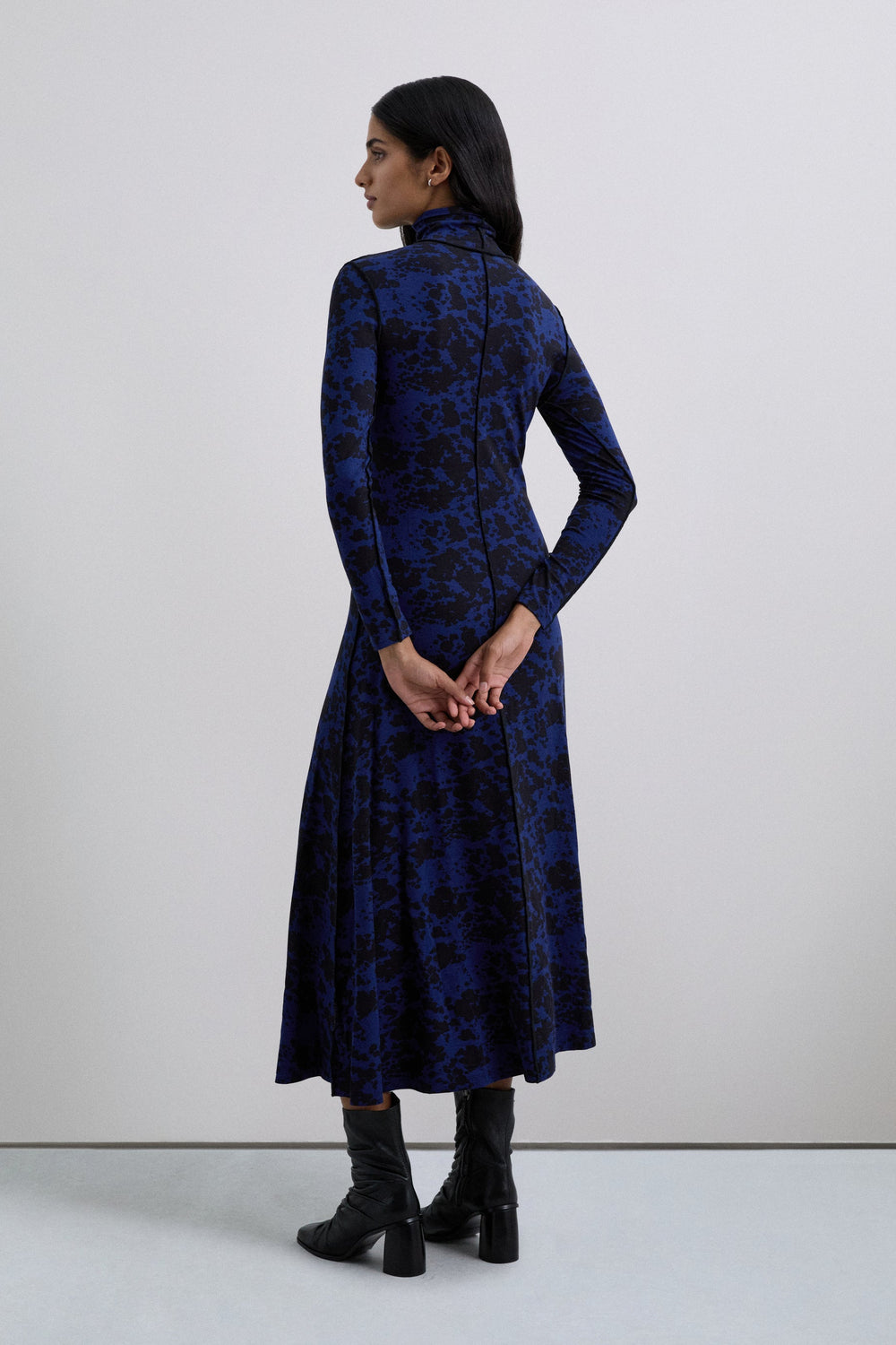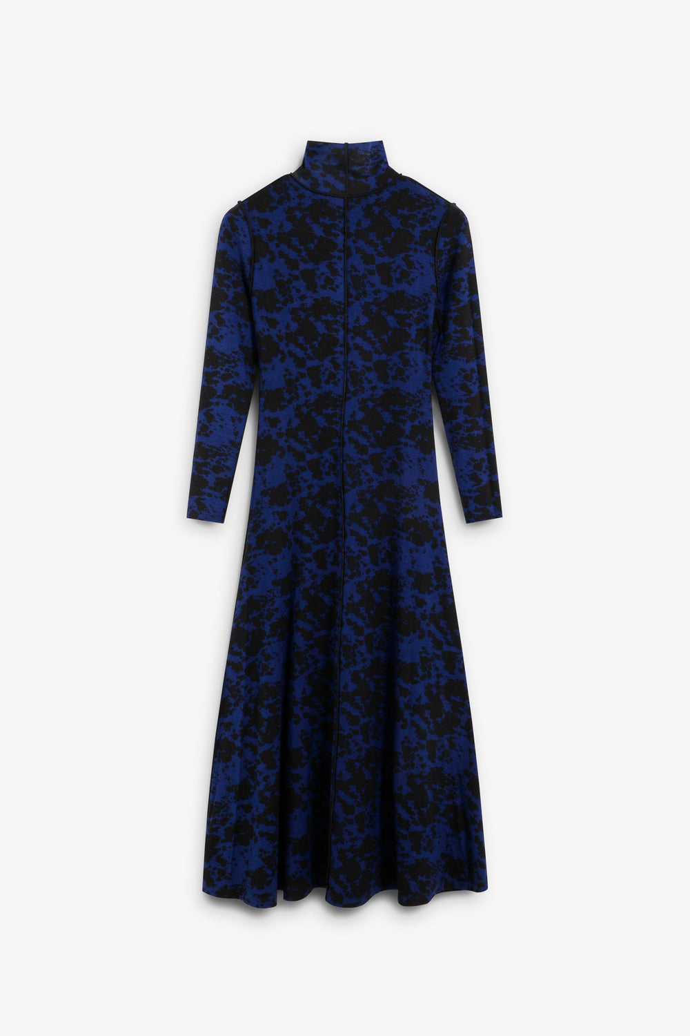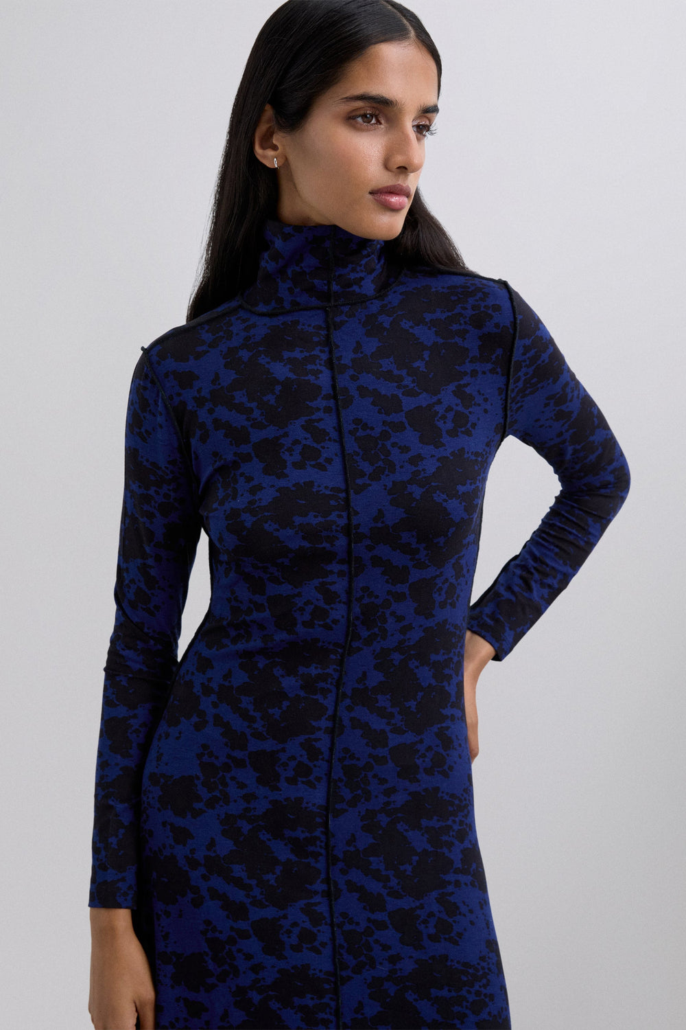 Midi dress. Long sleeves. Animal print. High neck. Seams detail.