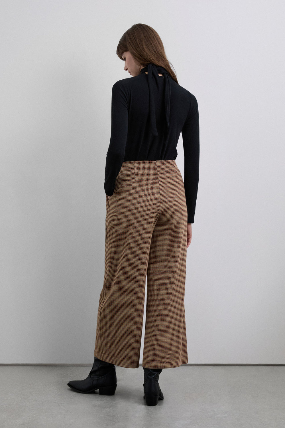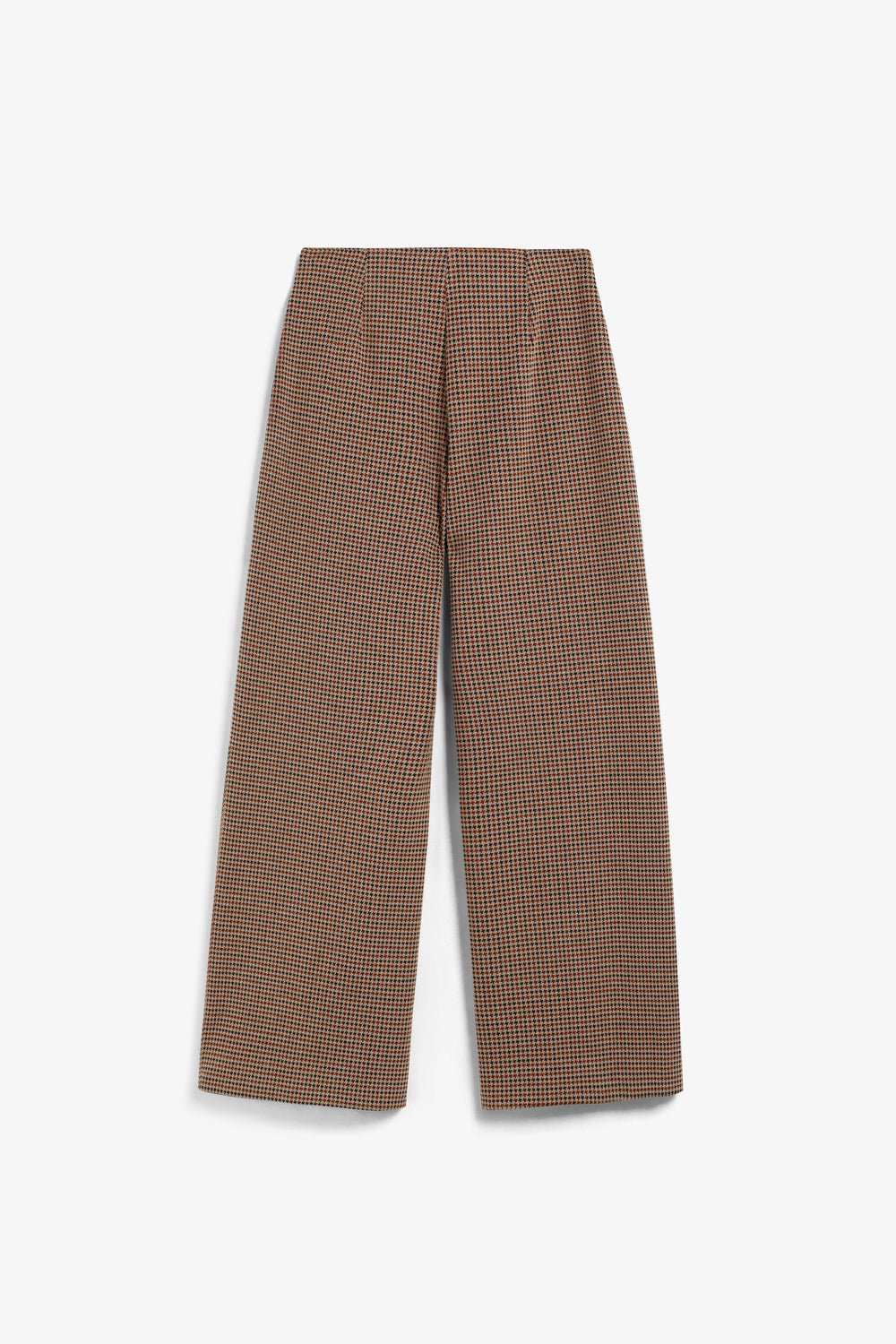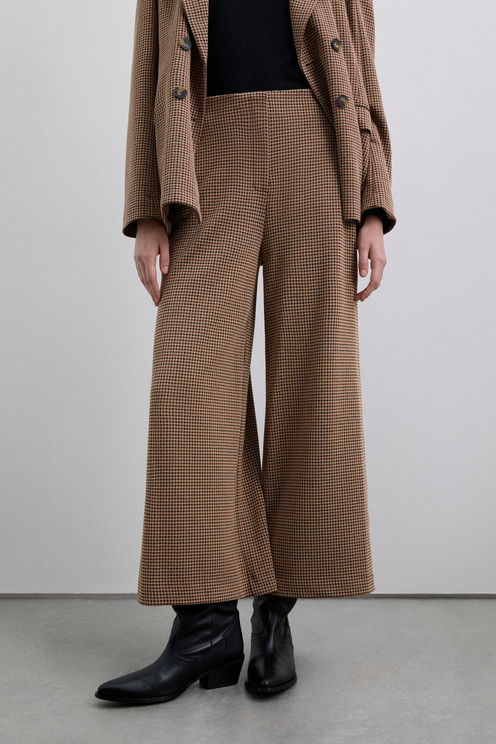 Houndstooth print trousers. Regular fit. Gathered waist. Zip fastening. Side pockets.