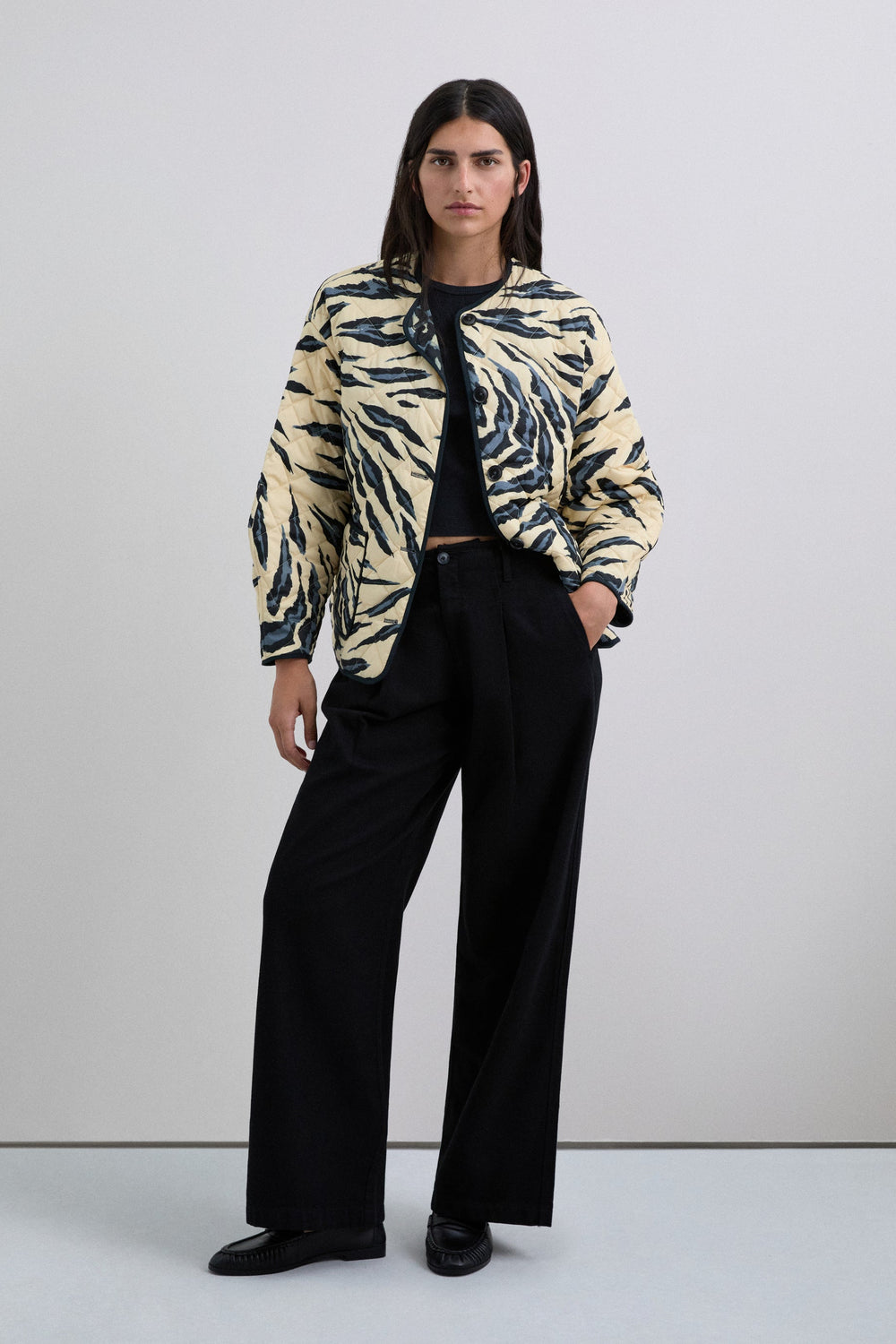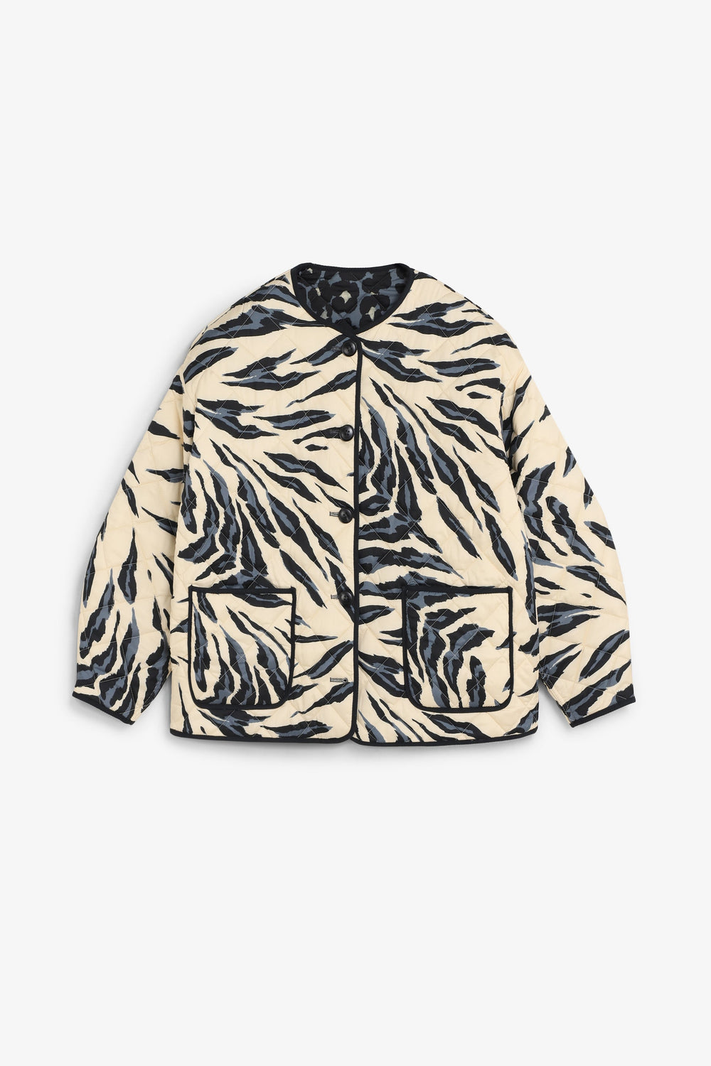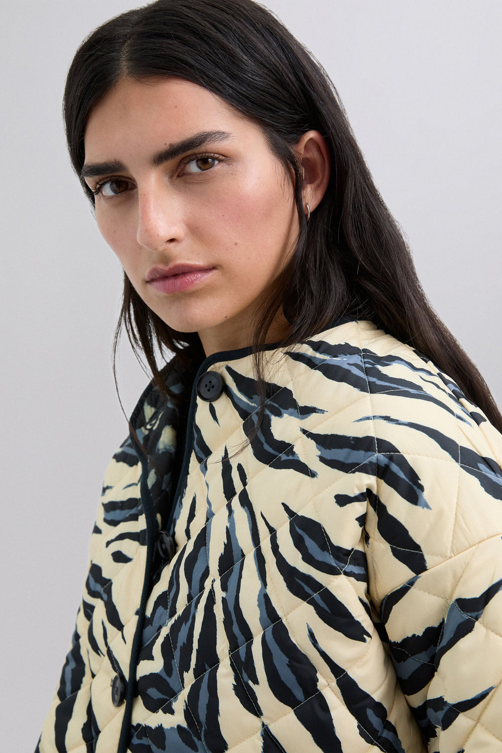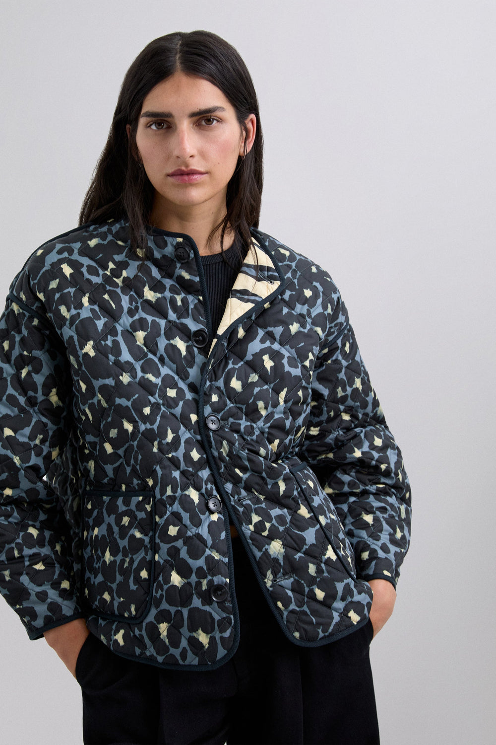 Reversible puffer jacket. Relaxed fit Animal print. Long sleeves. Two front pockets. Button fastening.