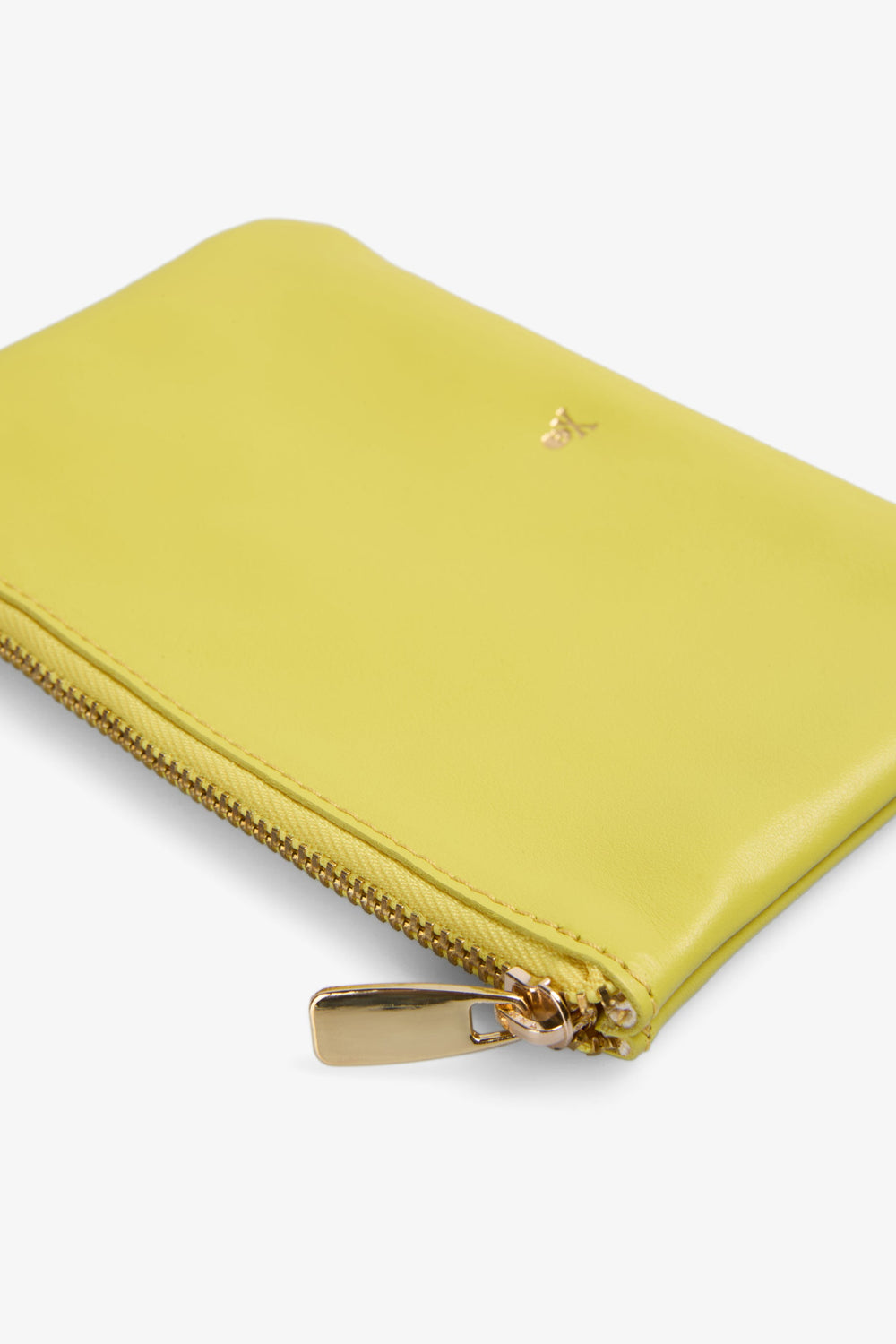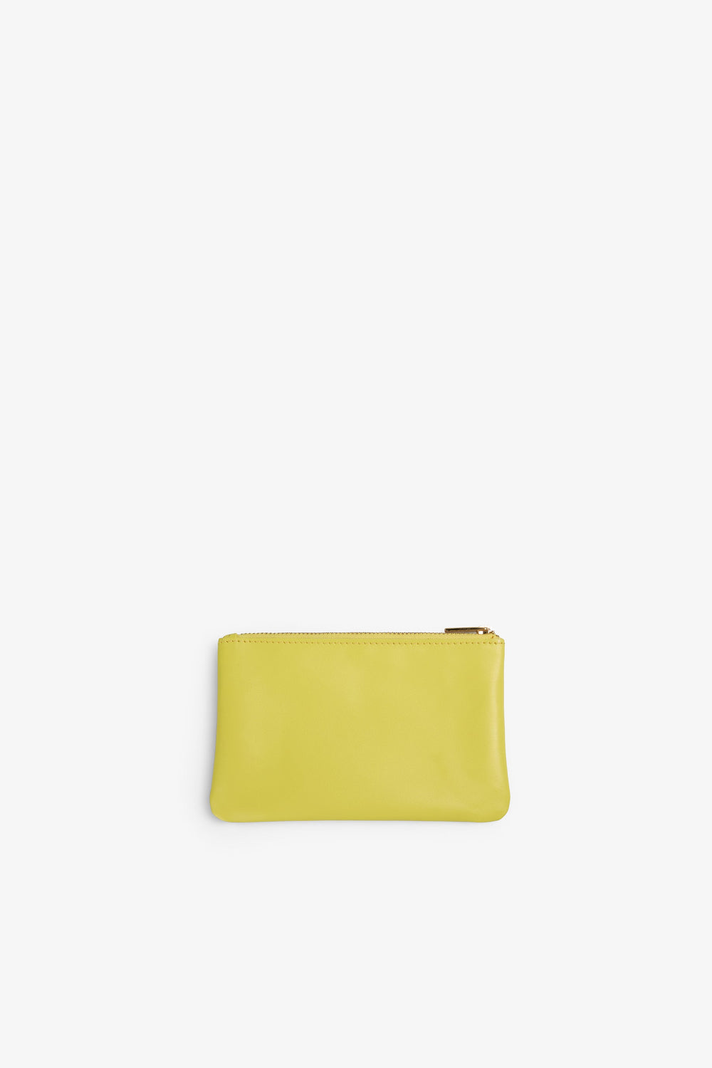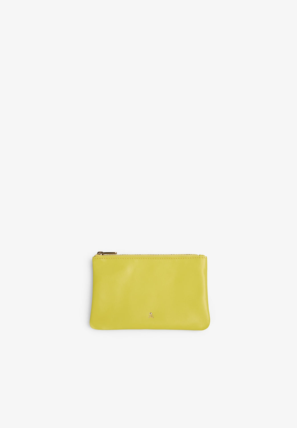 Coin purse crafted in fluorescent leather. Zip fastening and contrasting metallic embossed logo.