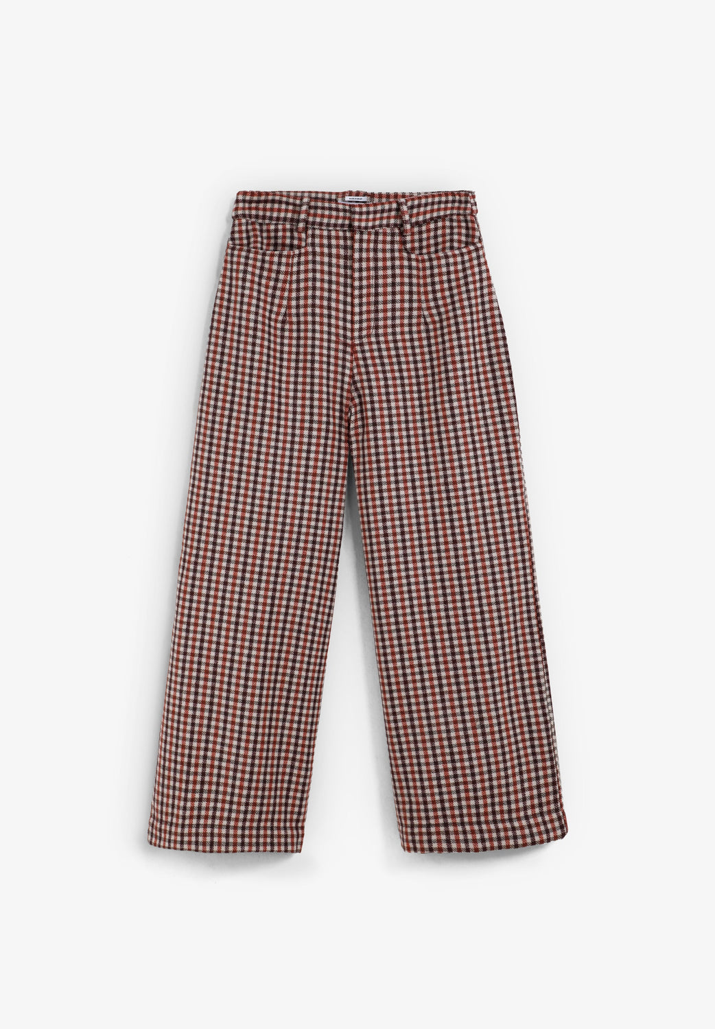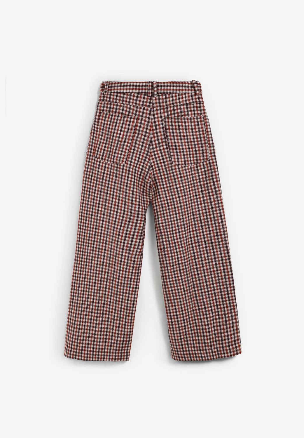 Culottes with check print. Front dart detail. Four pockets. Zip and button fastening.