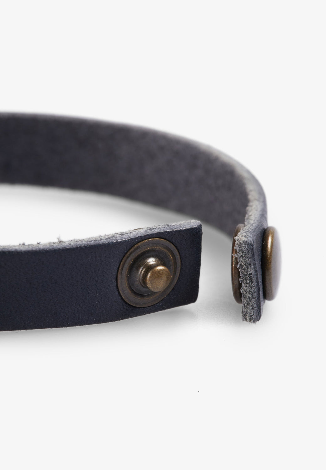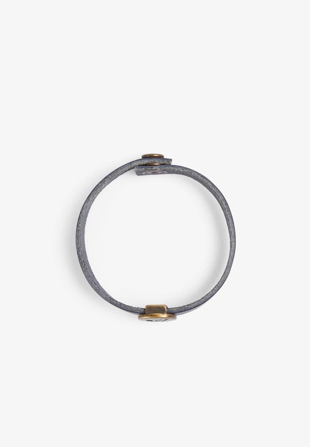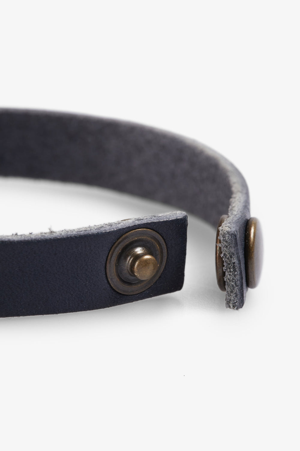 Bracelet made of 100% leather. Metal appliqué detail with skull. Snap button closure.