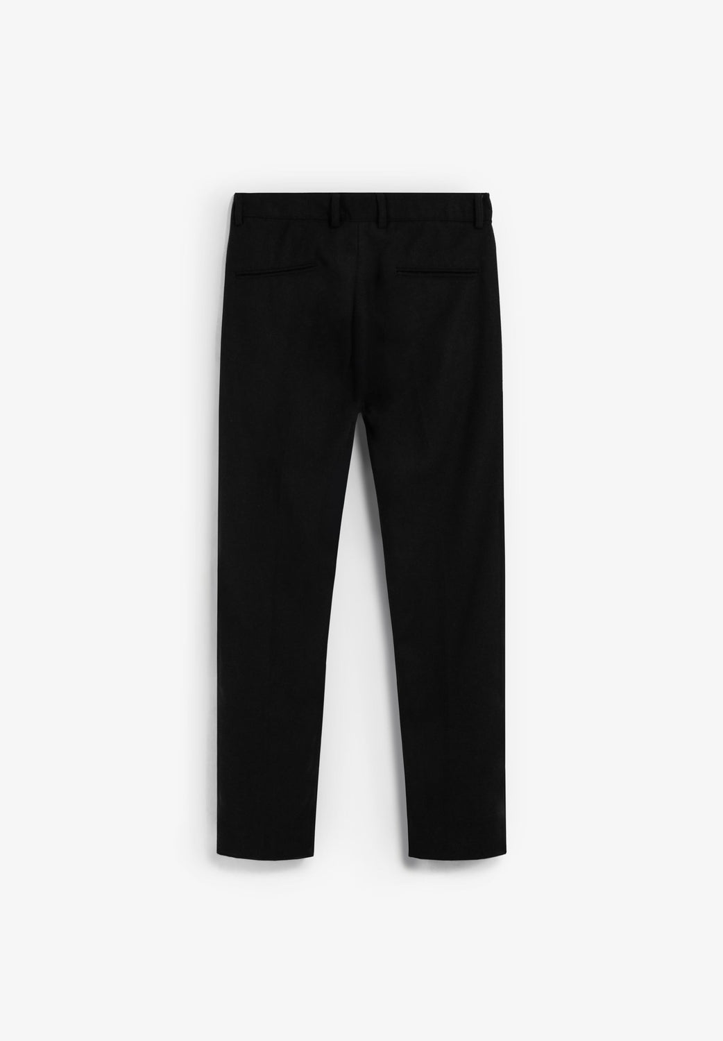 Darted trousers made of a wool blend. Regular fit. Front button and zip fastening. Belt loops. Side and back pockets.