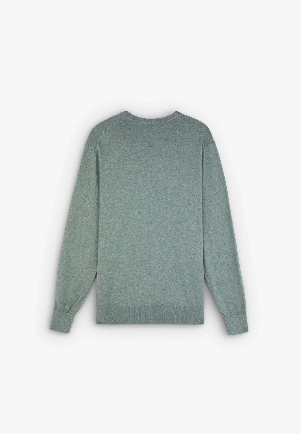 Sweater made of 100% high quality Supima cotton. V-neck. Matching embroidered skull on the chest. Ribbed trim.