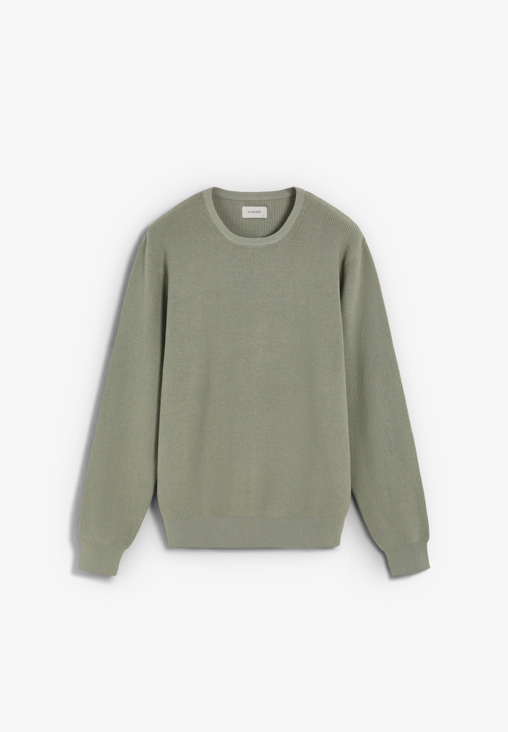 Knit sweater made of 100% BCI cotton. Textured finish. Round neck. Label detail on the left side-