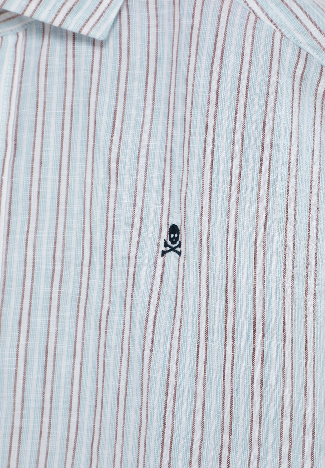 Shirt made of 100% linen. Long sleeves. Buttoned cuffs. Slim fit. Contrast embroidered skull on the chest. Front button fastening.