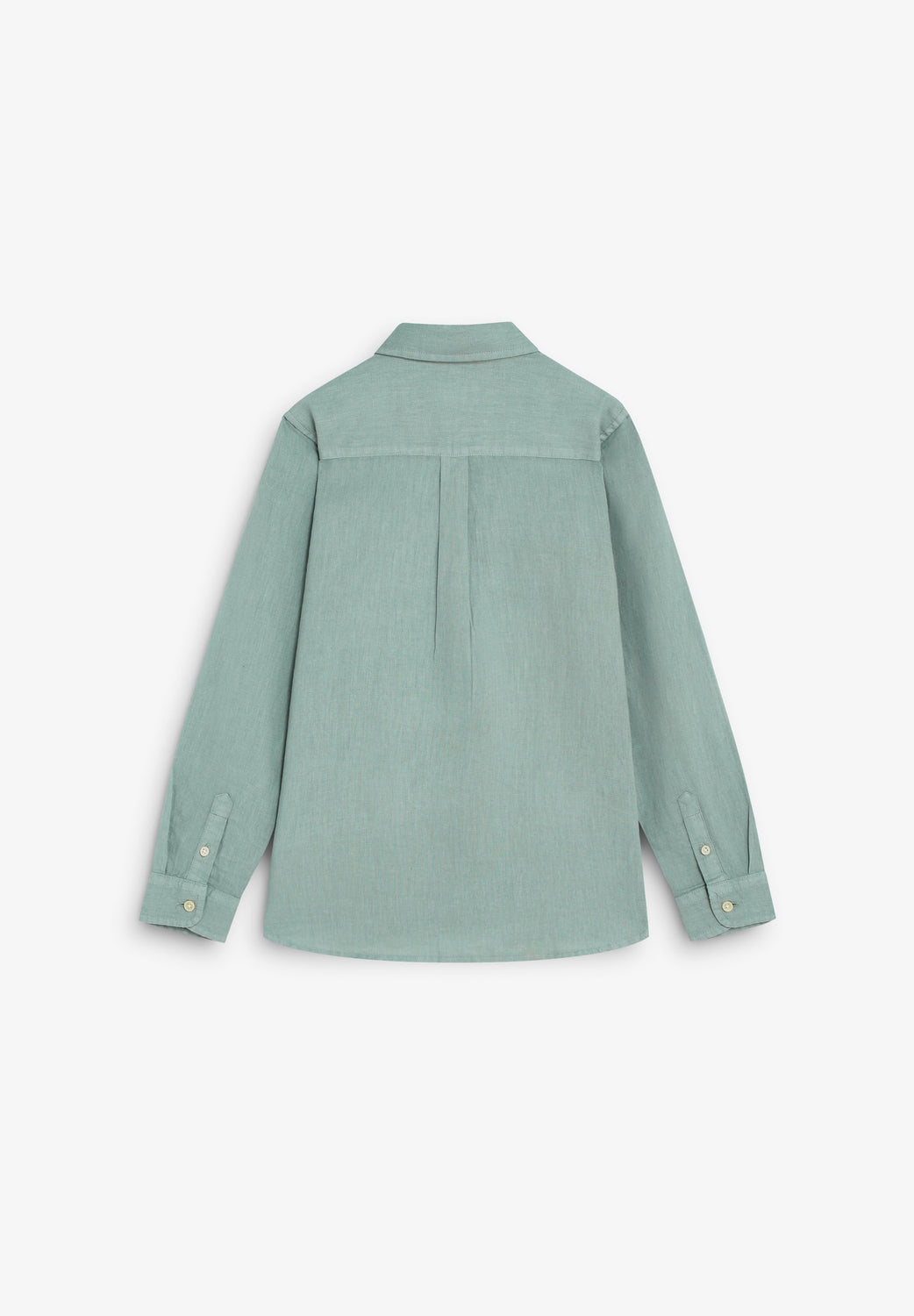 Made of a BCI cotton and linen blend. Classic collar and front button fastening. Matching embroidered skull on the chest. Regular fit with buttoned cuffs. Metal tag detail with logo at the bottom.