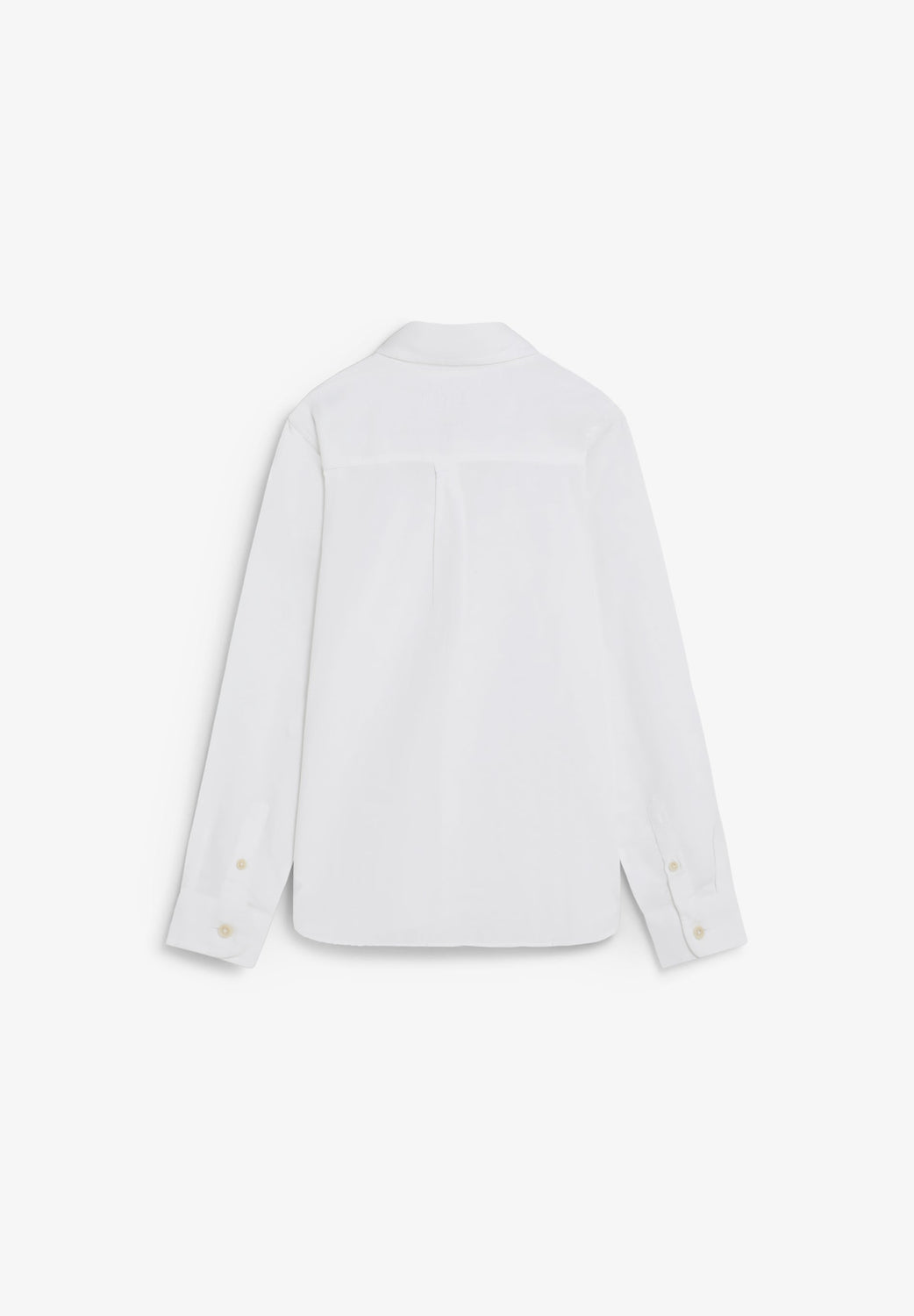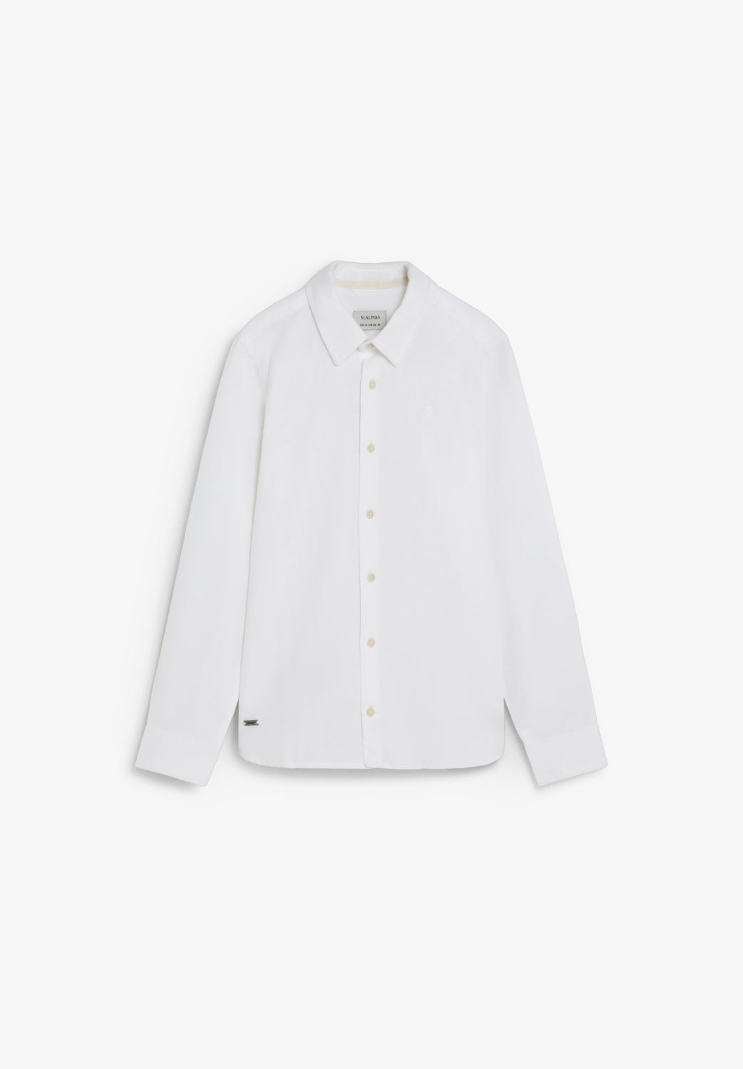 Made of a BCI cotton and linen blend. Classic collar and front button fastening. Matching embroidered skull on the chest. Regular fit with buttoned cuffs. Metal tag detail with logo at the bottom.
