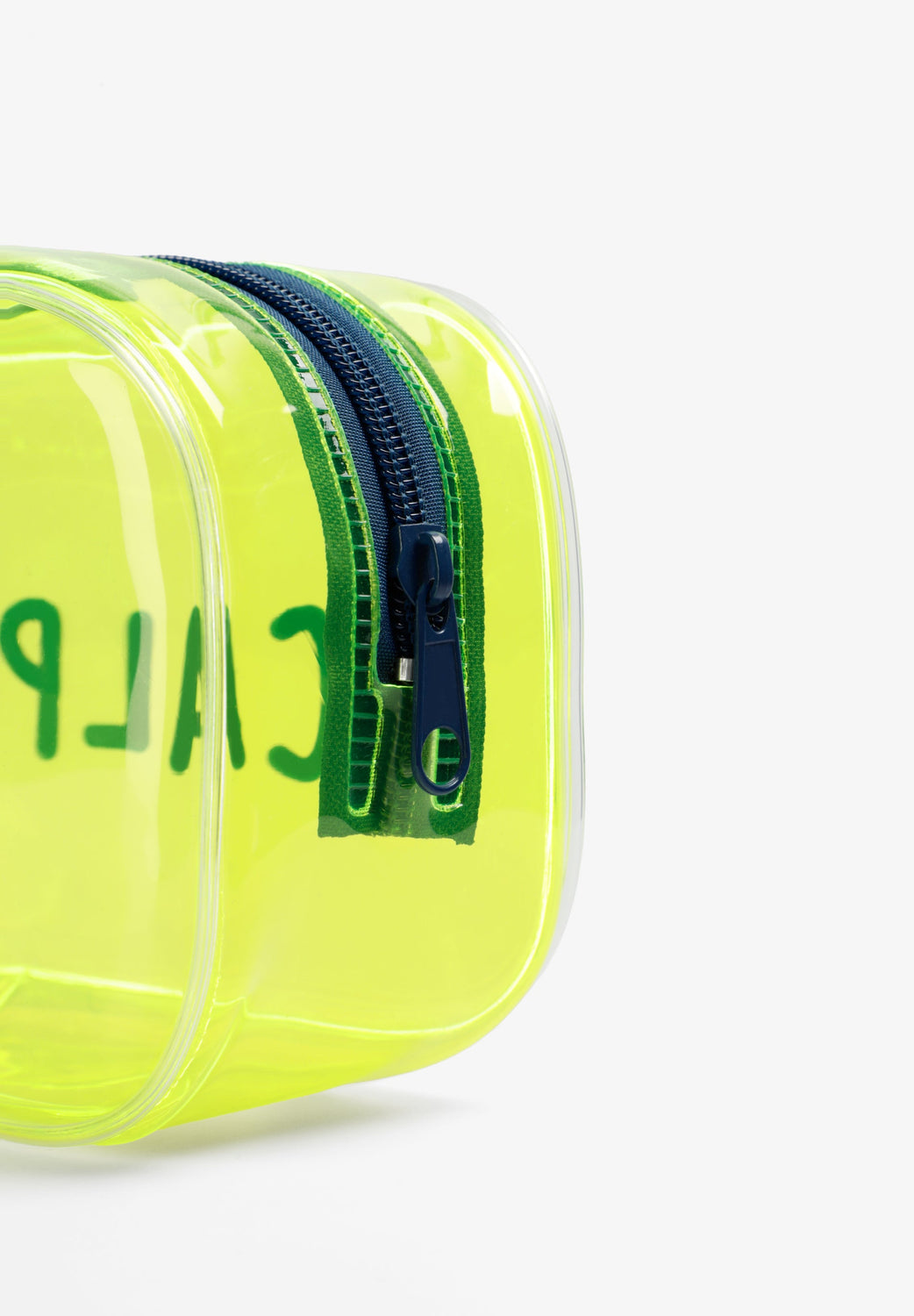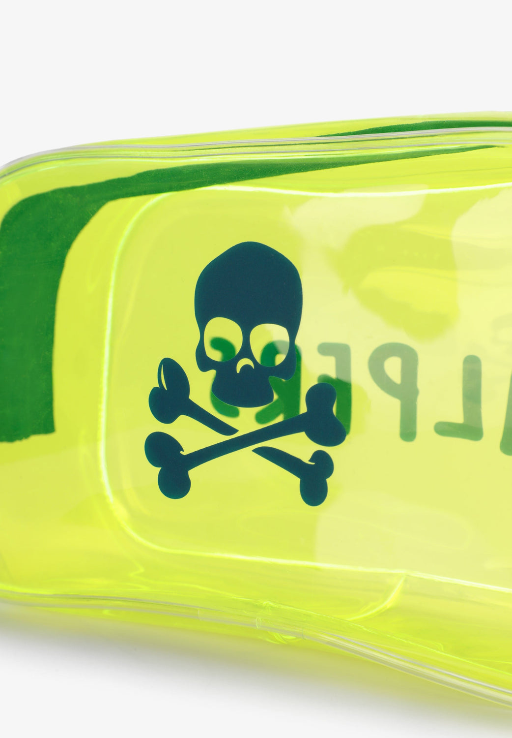 Transparent toiletry bag with zip fastening. Side print with skull and logo. Includes transparent bottles for liquids.