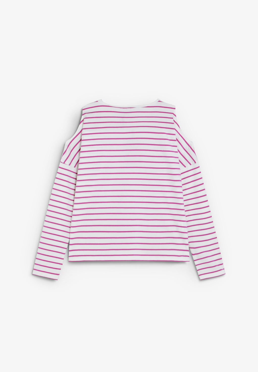 T-shirt made of cotton. Long sleeve with cut out at the shoulders. Round neck. Stripe print. Skull with glitter on chest.