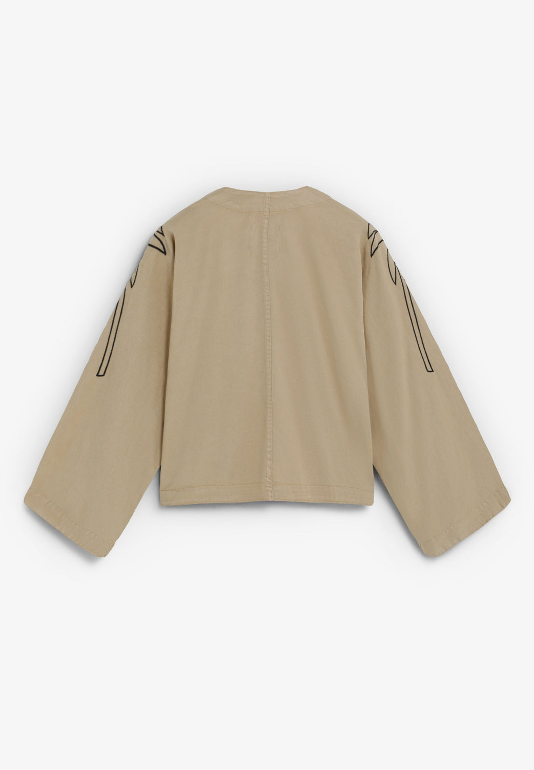 Shirt made of flowing fabric with embroidered details. Regular fit, V-neck, long flared sleeves and button fastening.