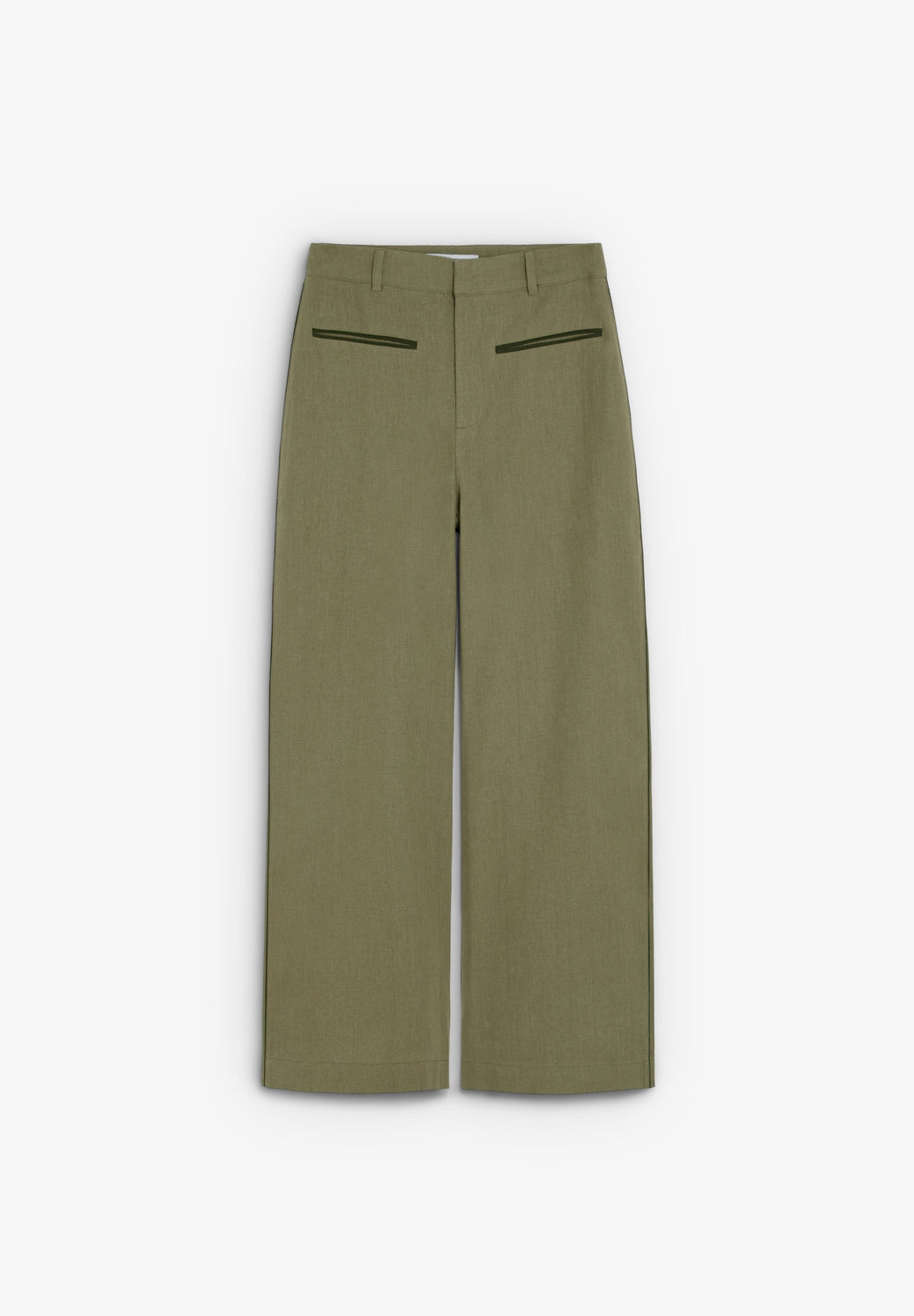 Trousers made of a linen and cotton blend. Cropped. Contrast front welt pockets.