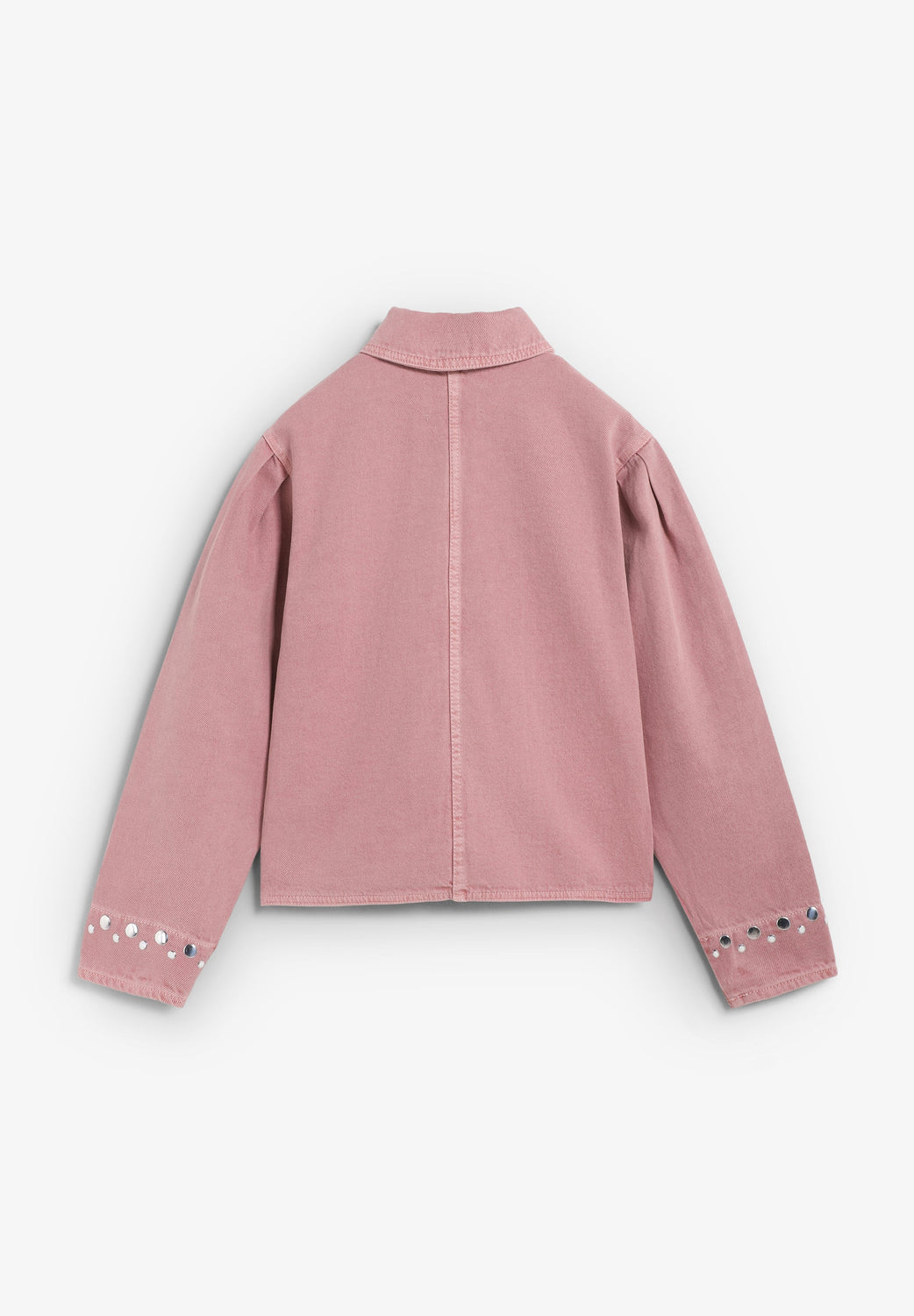 Denim jacket made of 100% cotton with studded details. Regular fit, classic collar and puffed sleeves with pleated detail on the shoulders and cuff trim. Button fastening.