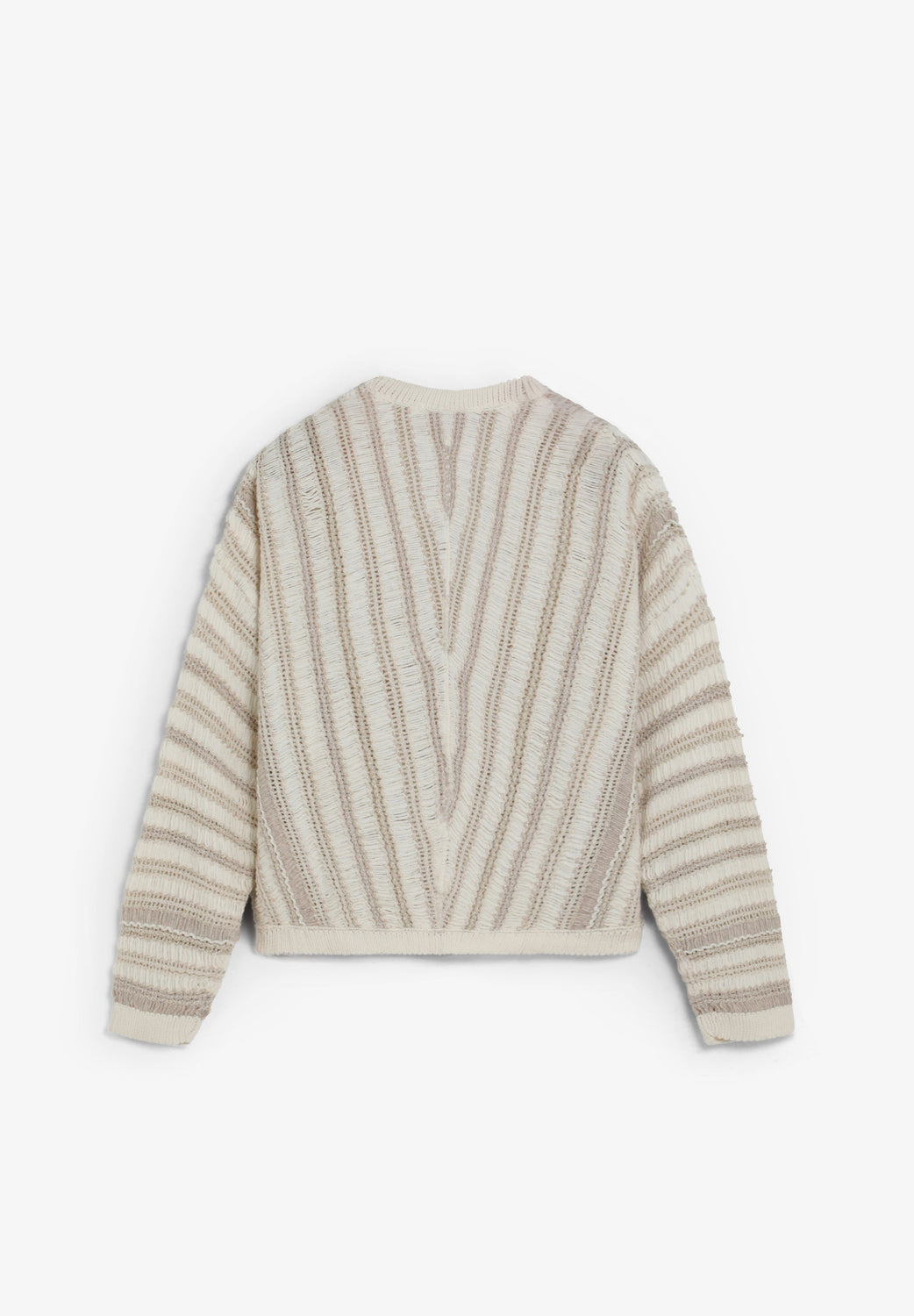 V-neck knit sweater with long sleeves. Diagonal stripe design. Ribbed trim on collar, cuffs and hem.