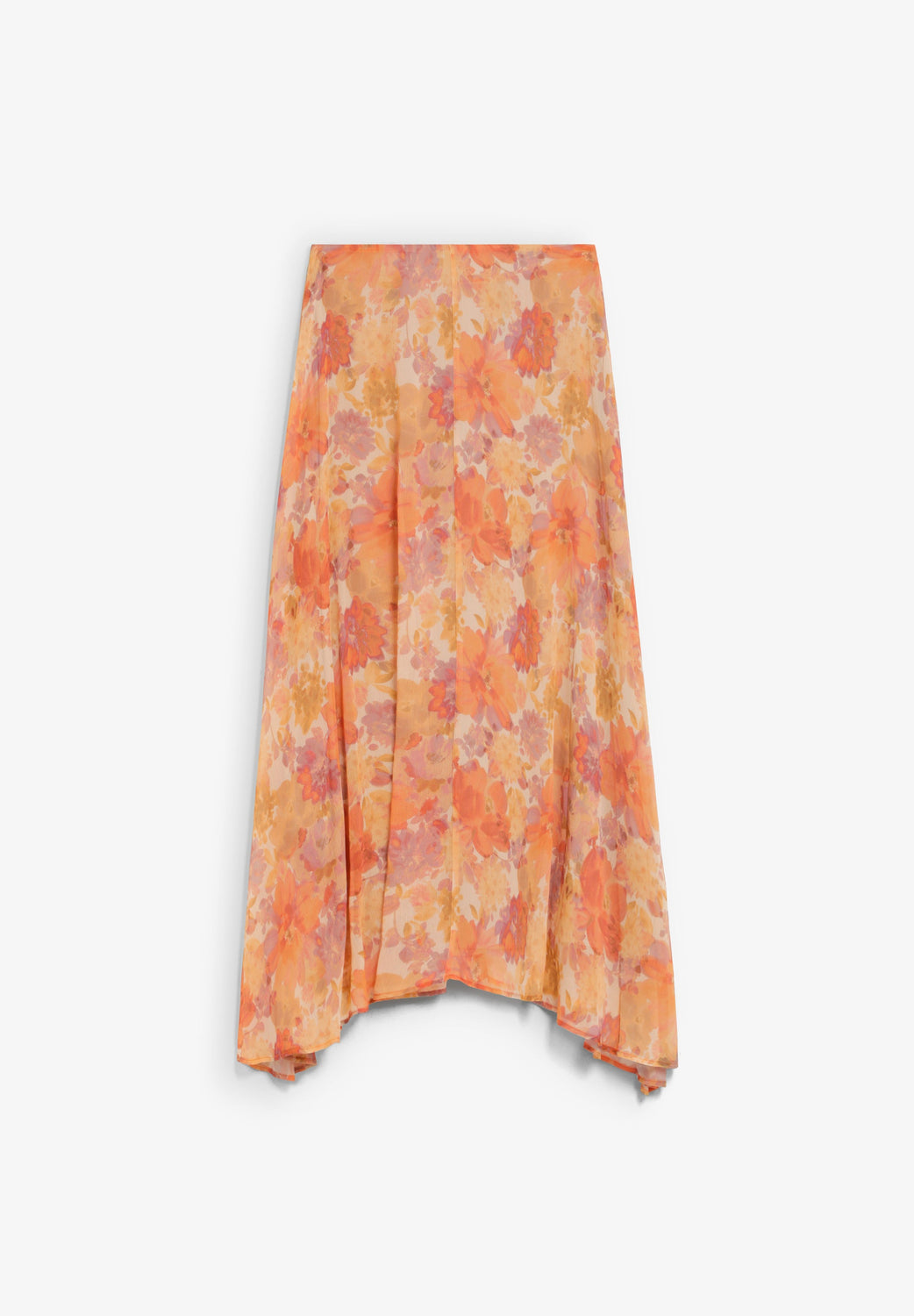 Midi skirt made of a lightweight fabric. High waist, regular fit. Floral print. Wide, flowing drop. Concealed side zip fastening