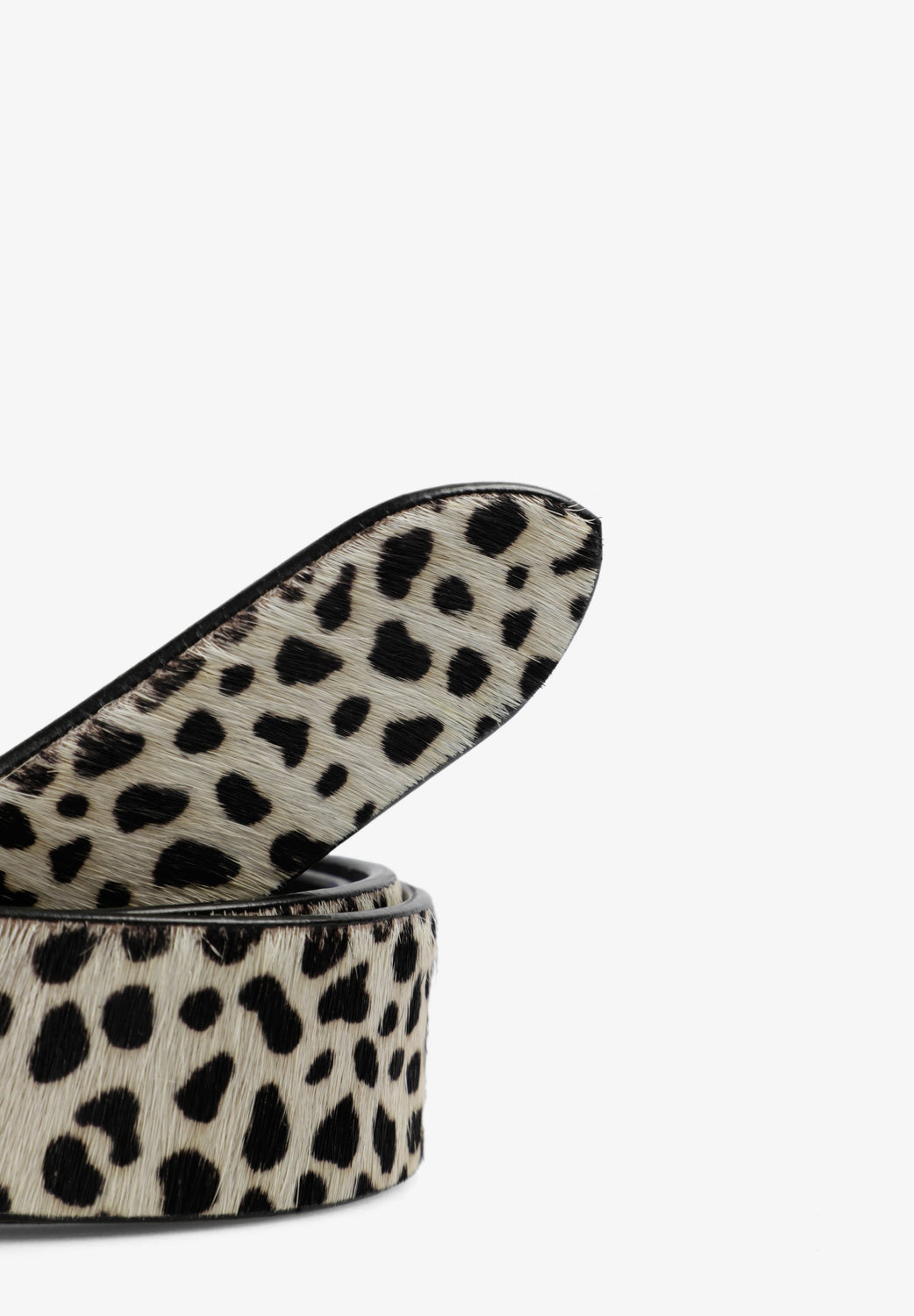 Belt made of 100% leather. Animal print. Adjustable metal fastening.