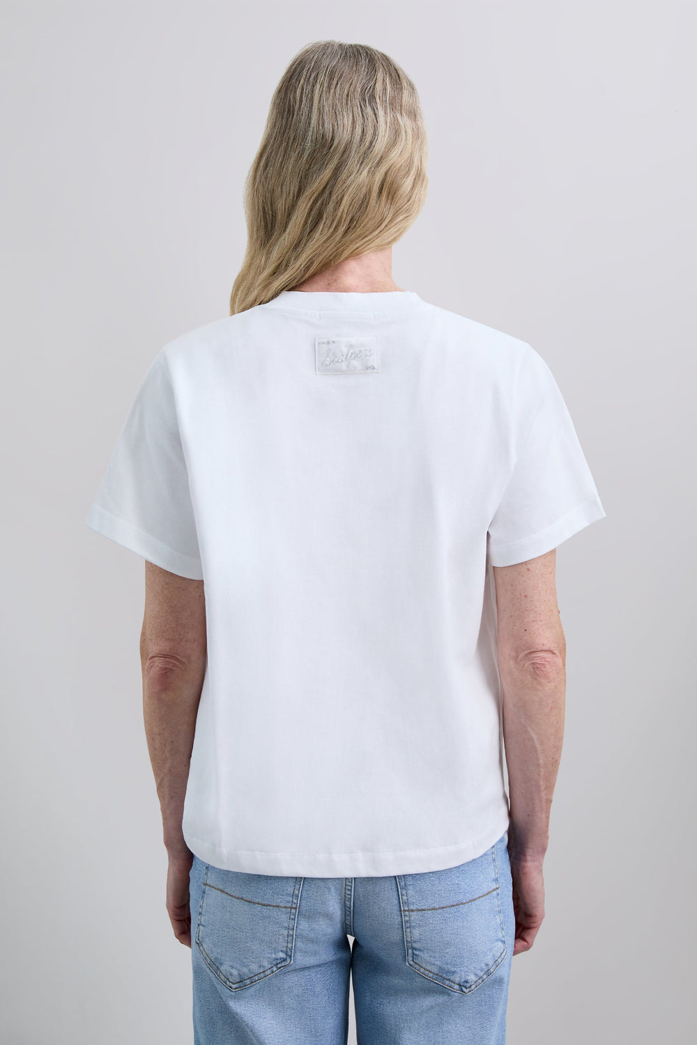 Regular fit T-shirt van 100% katoenen stof. Ronde hals en korte mouw. Logo met label op de achterkant