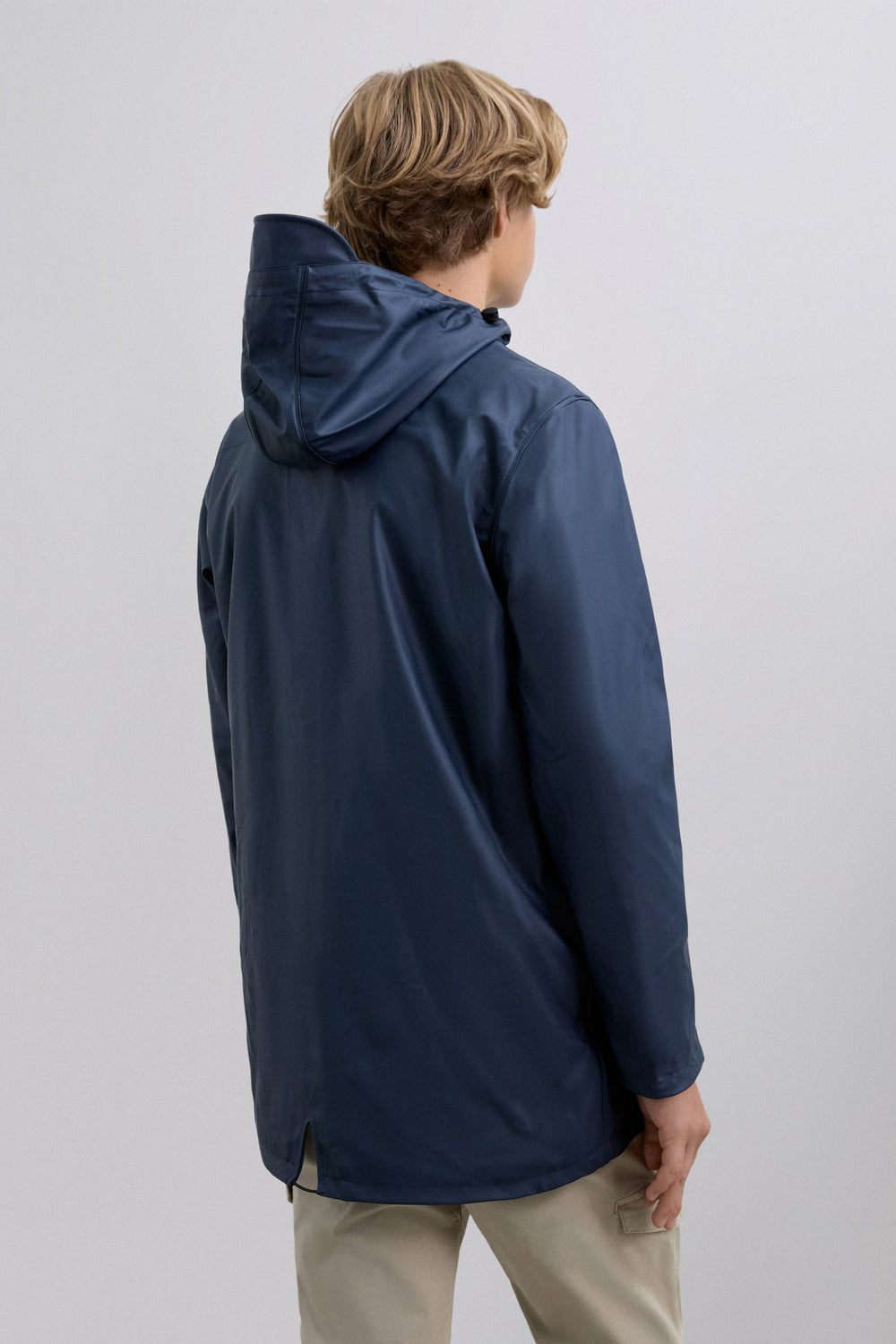 Waterproof parka with adjustable hood. Side pockets with placket and snap button. Synthetic lining. Rubber logo patch detail and skull. Button fastening. Long sleeves.