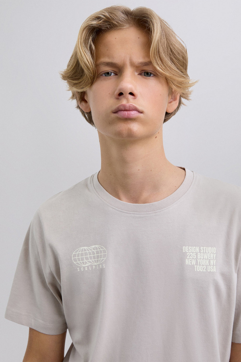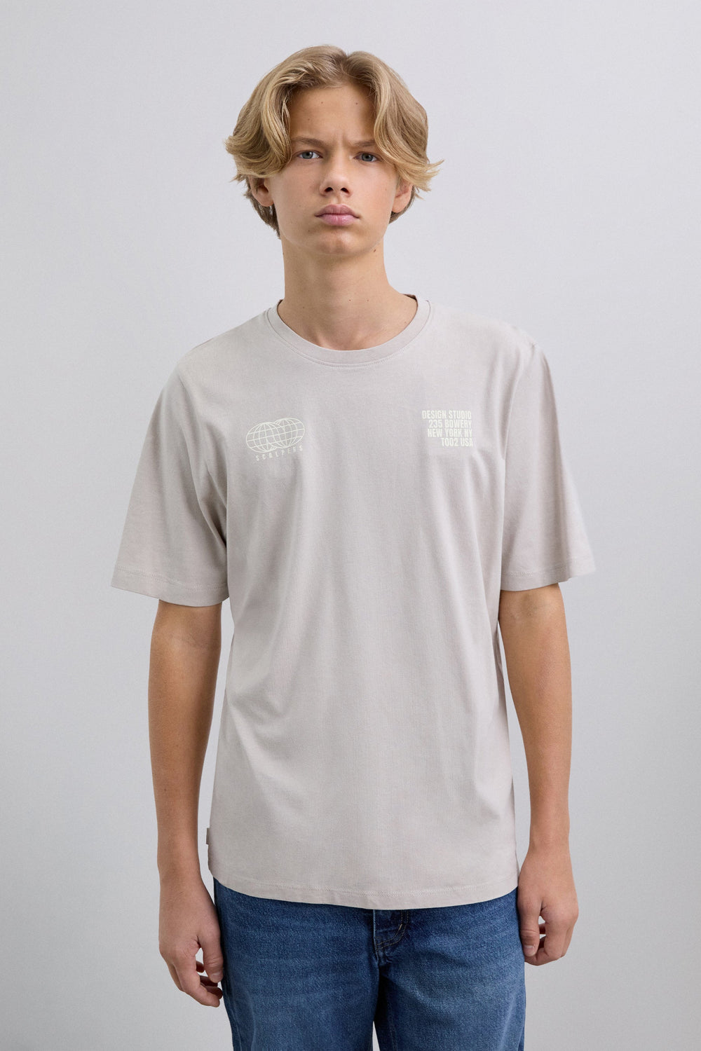 T-shirt made of 100% organic cotton. Regular fit, round neck and short sleeves. Back and front print with logo.