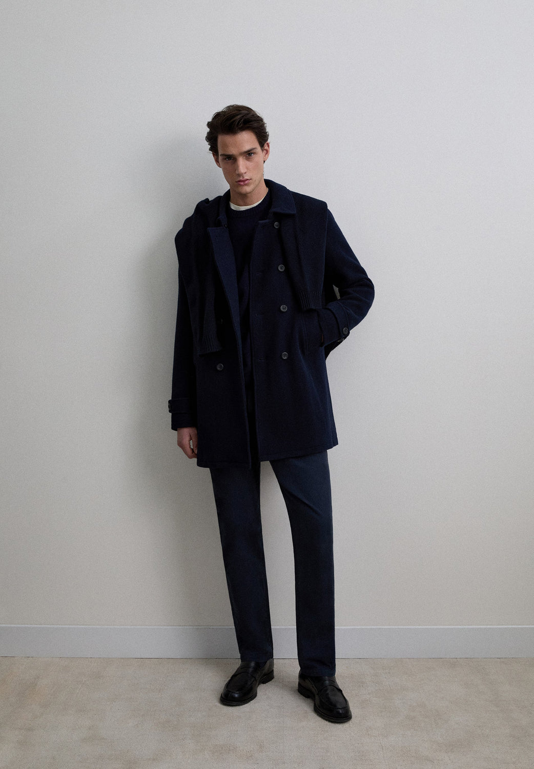 DOUBLE-BREASTED WOLLEN JAS MET KNOPEN