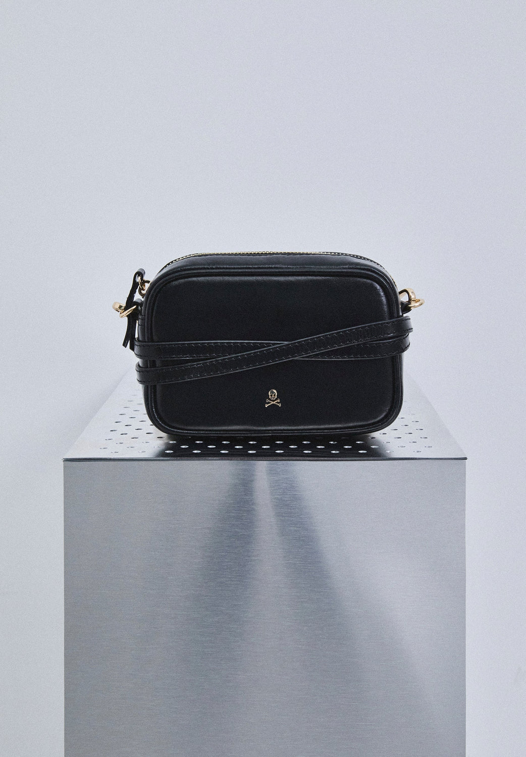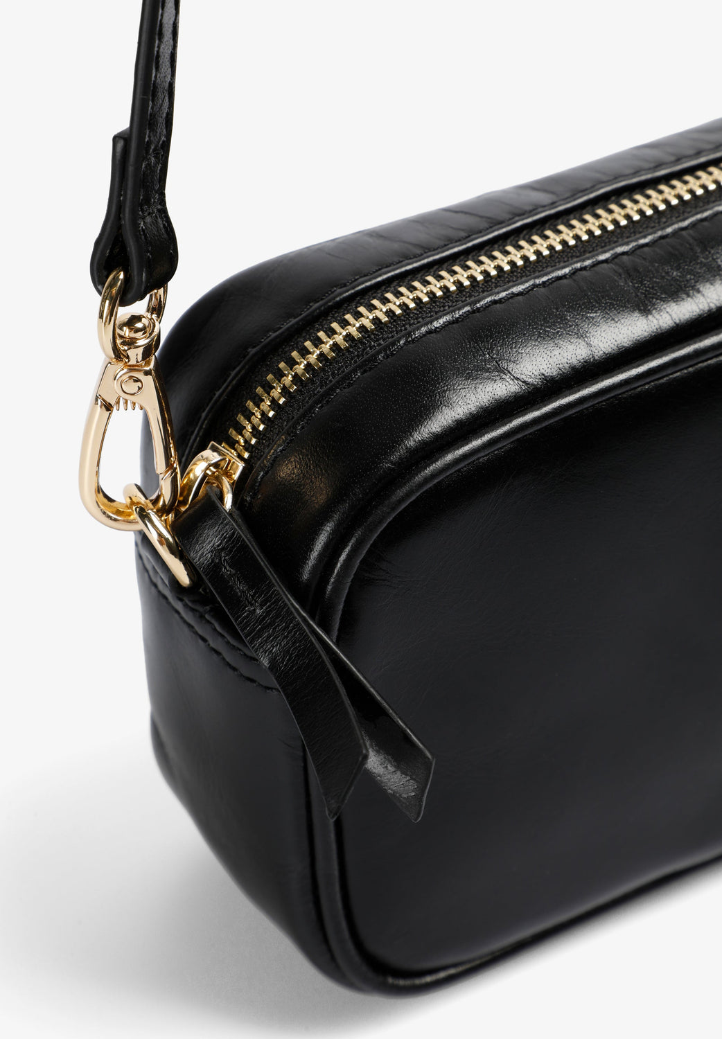 Small size bag. Made of 100% leather. Zip fastening. Long strap. Logo detail on the front.