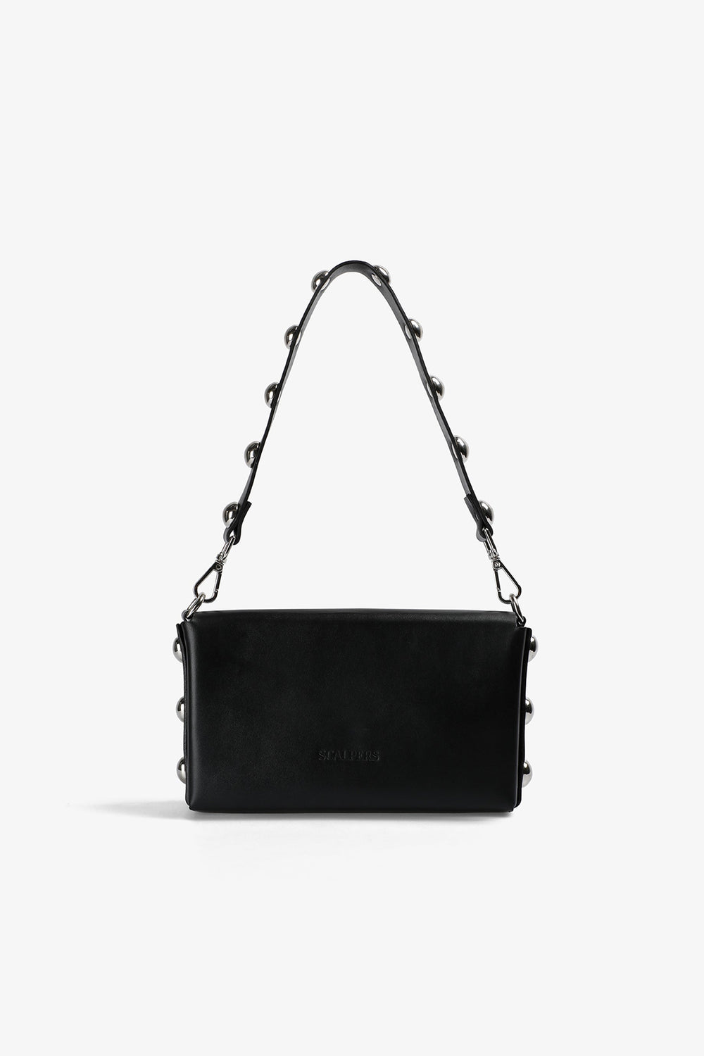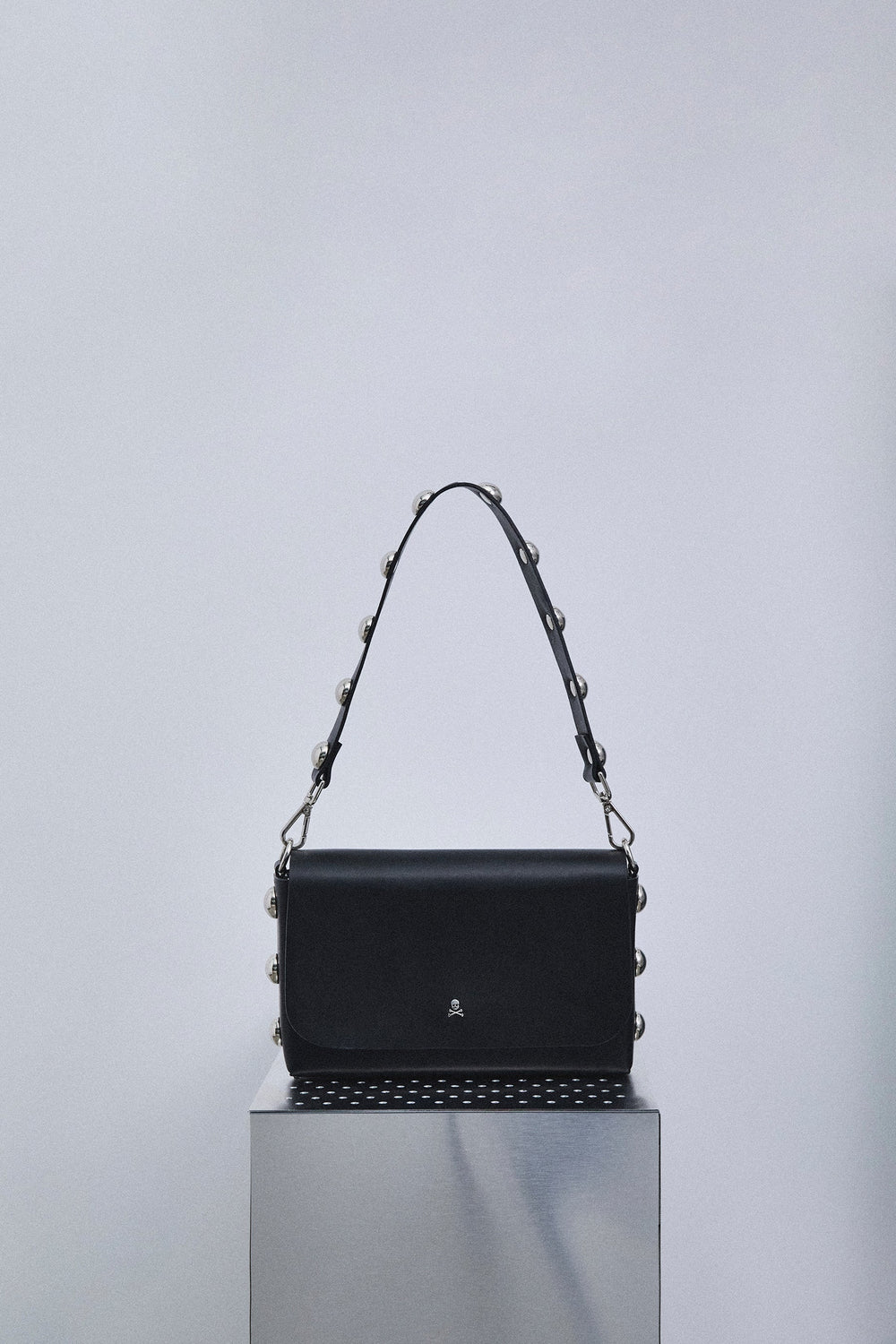 Mini bag made in 100% leather with studs details on handle and sides. Metallic logo detail on front.