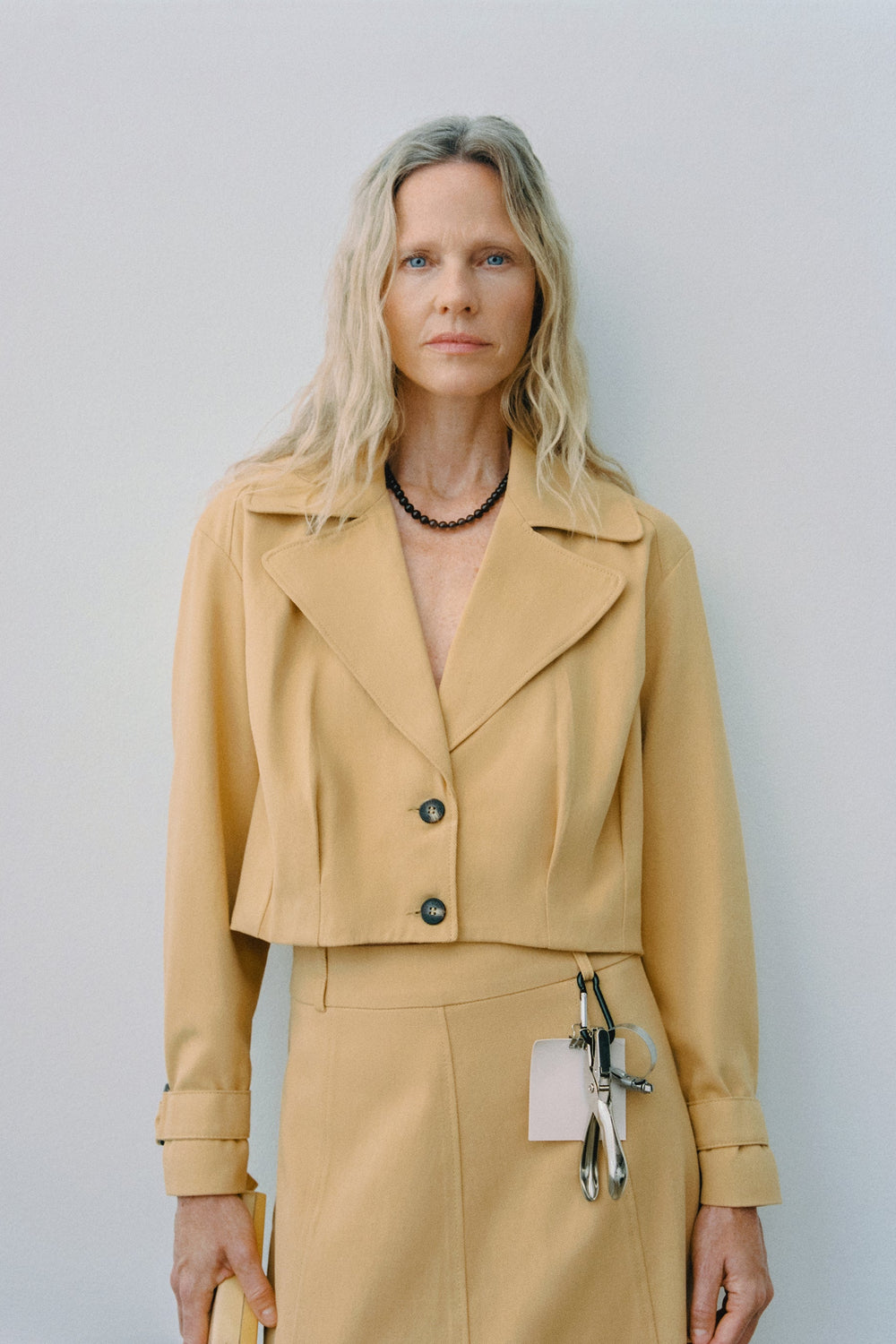 Short lightweight jacket in 100% cotton with notched lapel and front button fastening. Long sleeves with buttoned cuffs.
