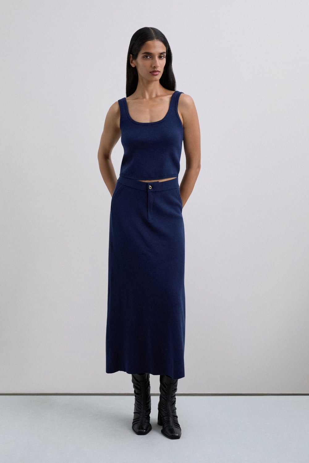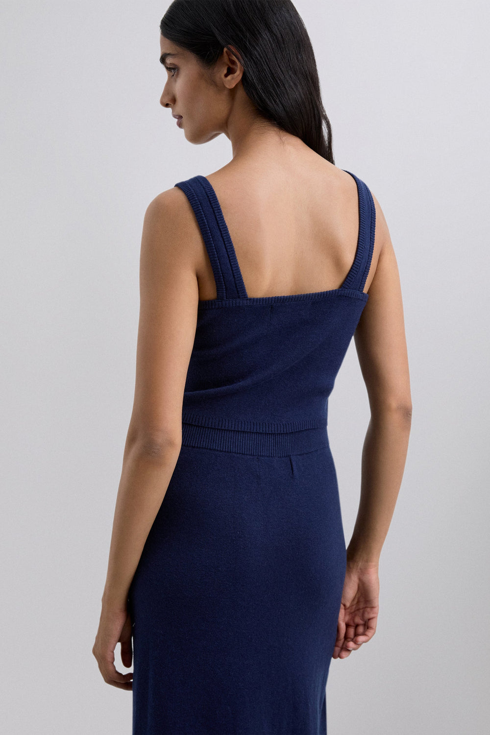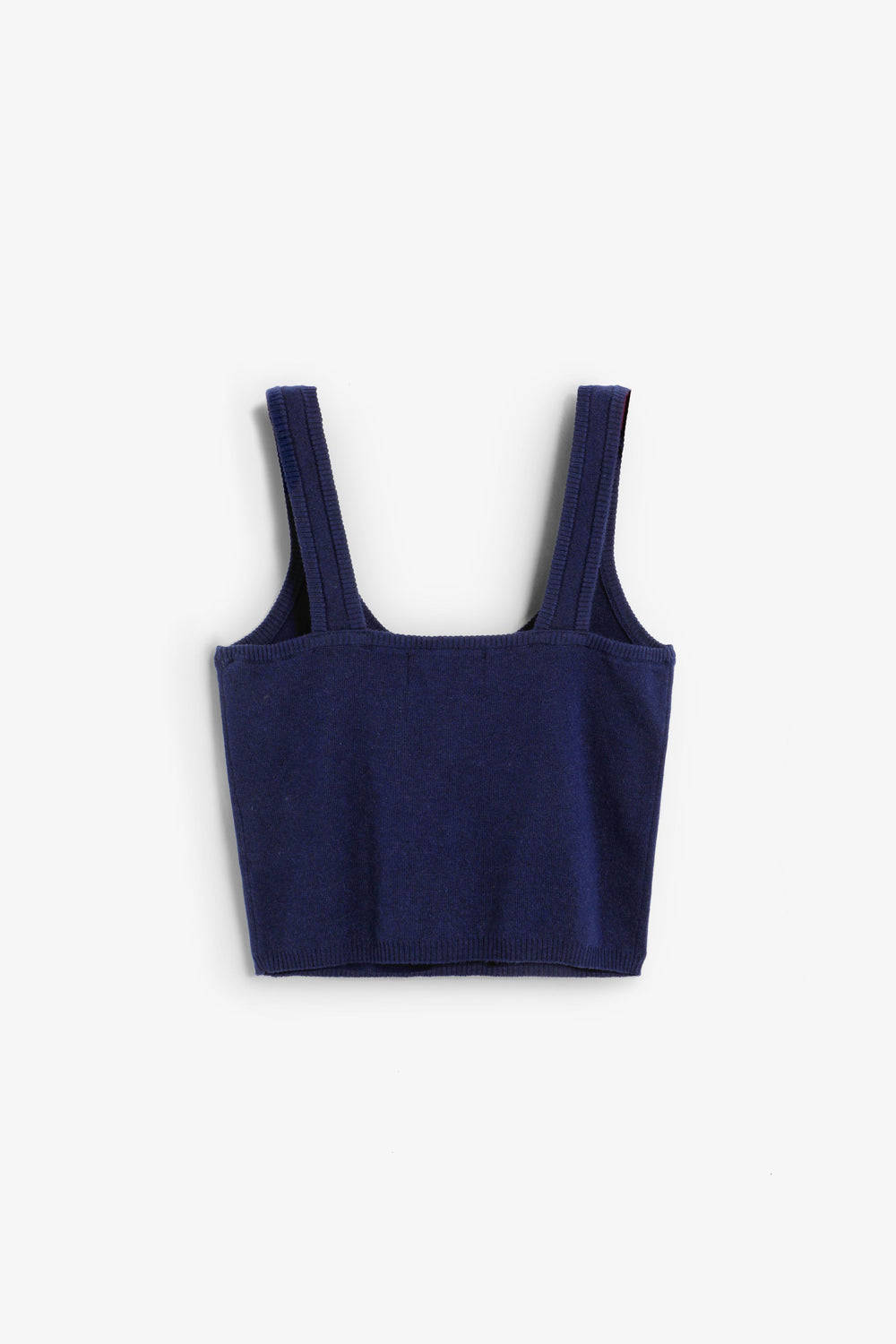 Top made of cotton, viscose and wool blend. Slim fit, cropped, round neck and wide straps. Trim detail on the neckline.