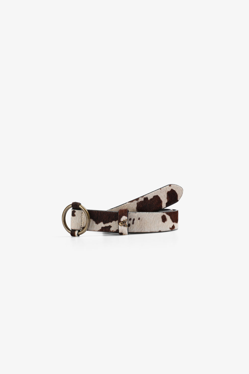 Belt made of 100% leather. Animal print. Circular metal buckle. Metallic skull detail.