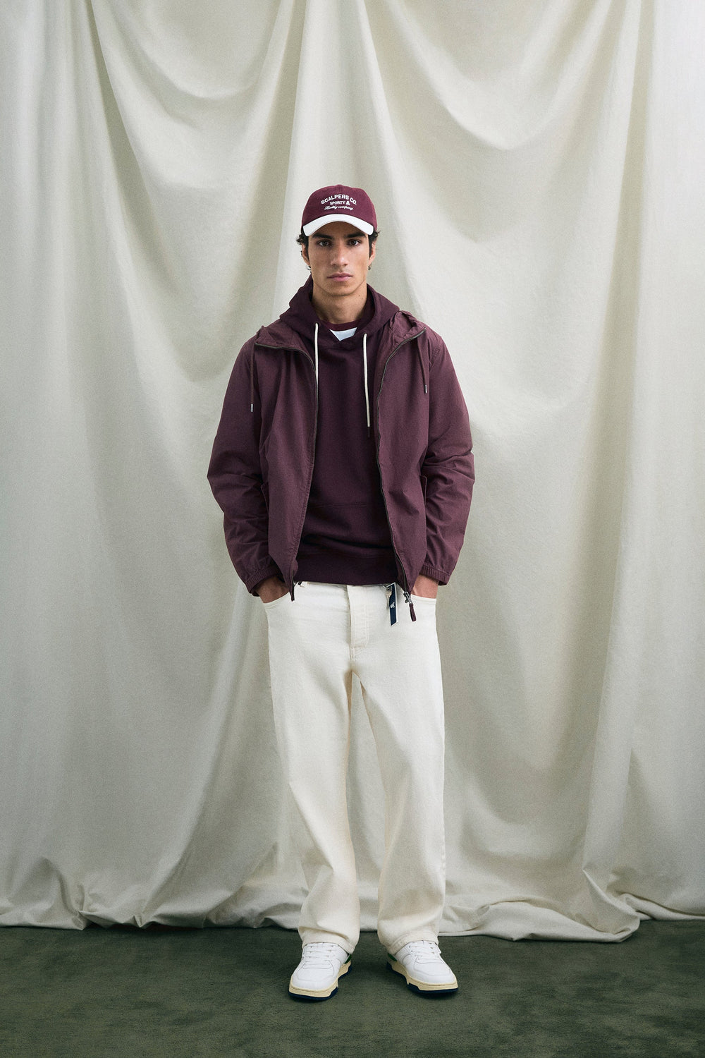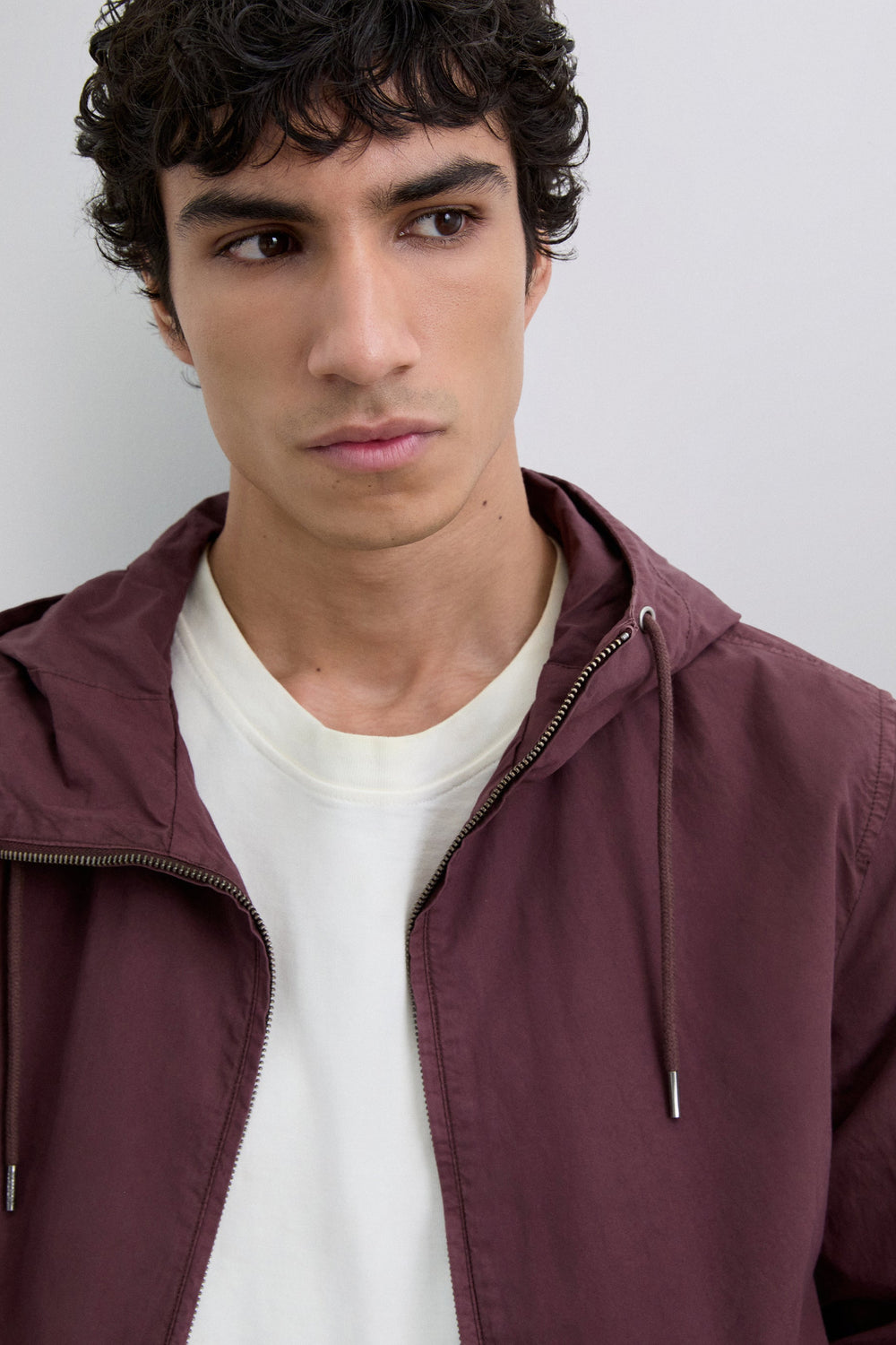 Lightweight jacket made of 100% cotton BCI. Regular fit. Adjustable drawstring hood and zip fastening. Long sleeves with elastic cuffs. Front flap pockets. Lined.