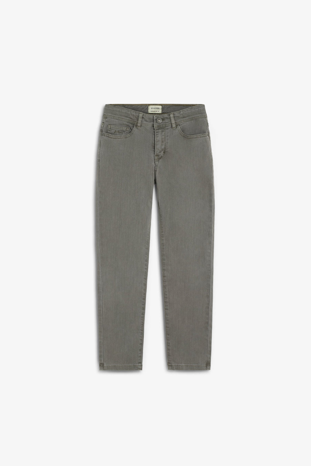 Trousers made of organic BCI cotton. Front button fastening. Front and back pockets.