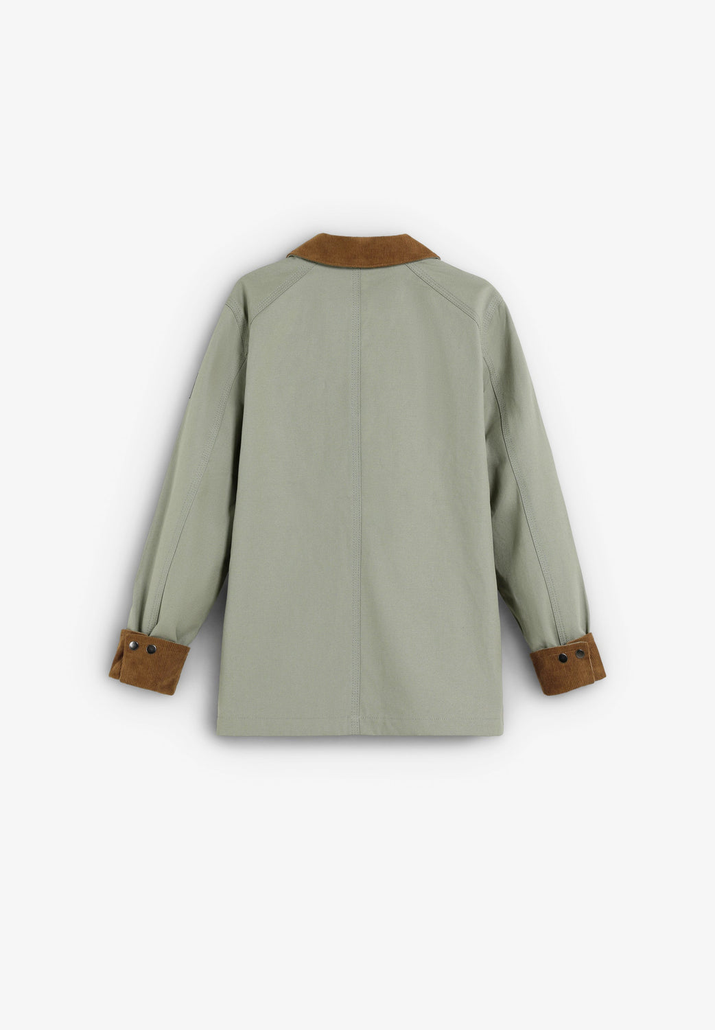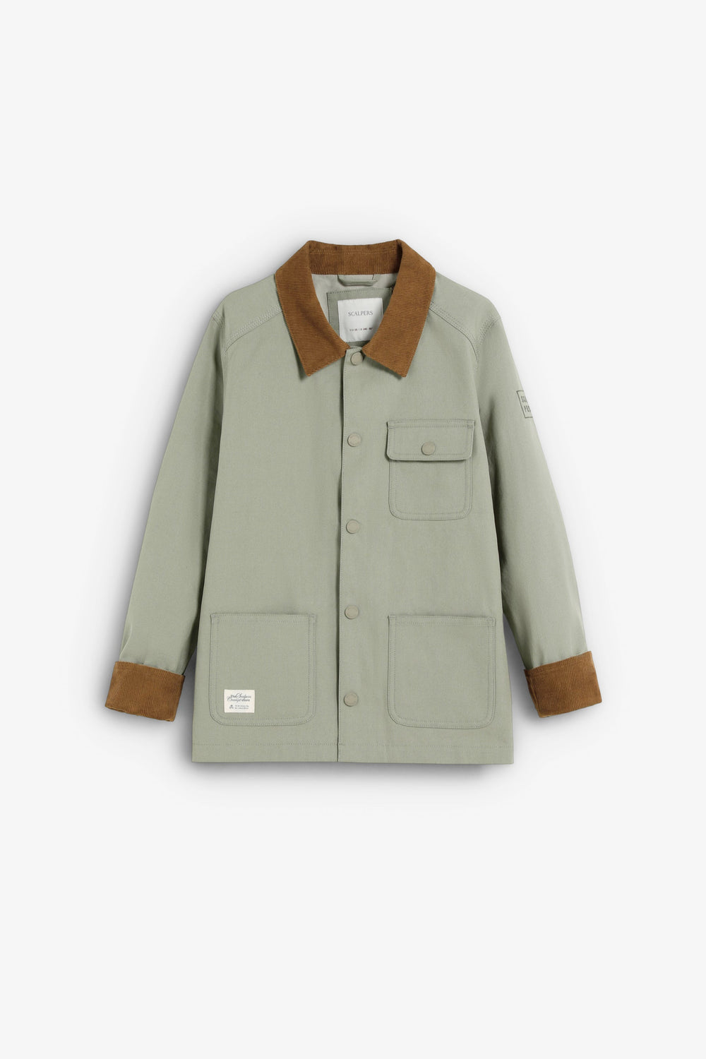 Jacket made of 100% BCI cotton. Contrast shirt collar. Long sleeves. Button and zip fastening. Front and chest pockets with button fastening. Logo label detail on the front pocket.