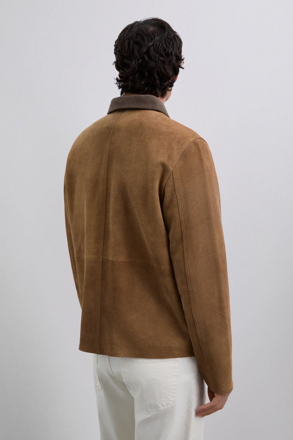 Jacket made of 100% leather. Long sleeves. Corduroy collar. Metal toggle and zip fastening at front. Two buttoned patch pockets.