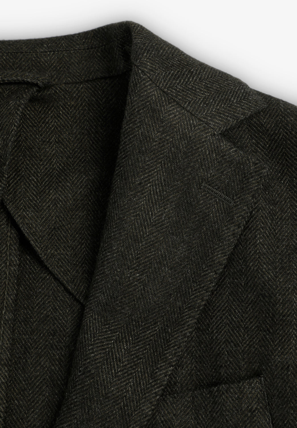 Blazer made of wool. Herringbone design. Three flap pockets. Two button fastening. Chest pocket with piping. Long sleeves.