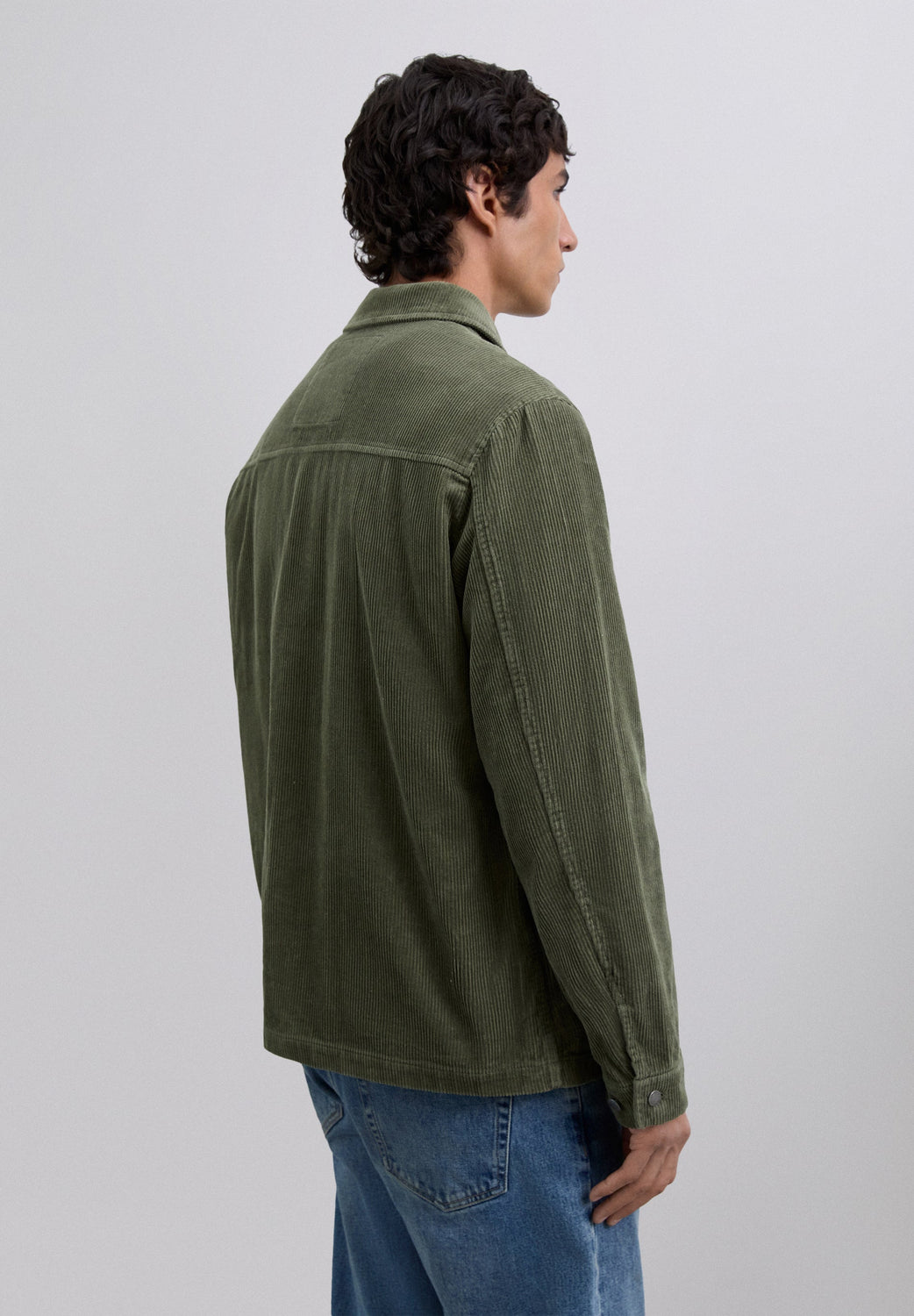 Corduroy overshirt made of 100% BCI cotton. Long sleeves. Shirt collar. Front button fastening. Two front pockets with flaps and patch design. Buttoned cuffs. Logo detail on buttons and label.