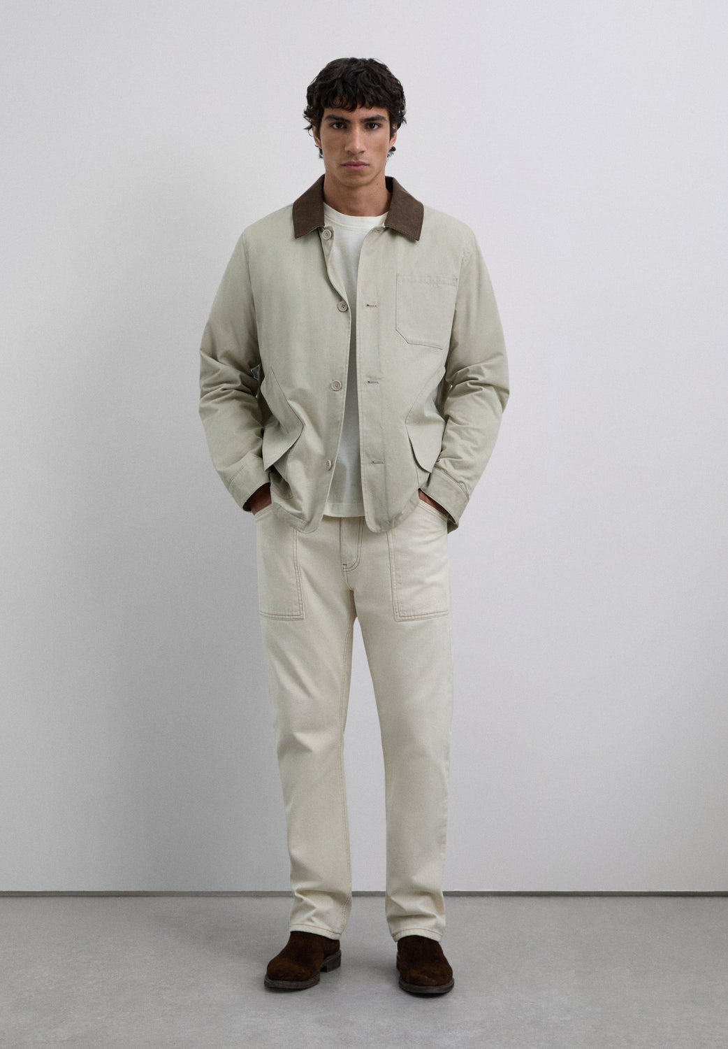 Carpenter-style jeans made of 100% cotton. Cropped Button and zip fastening. Side and back pockets. Belt loops at the waist.