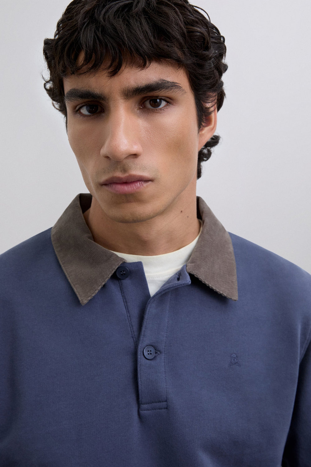 EMBROIDERED POLO SHIRT WITH CORDUROY COLLAR