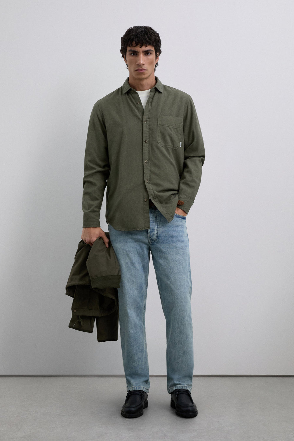 Overshirt made of 100% BCI cotton. Regular fit. Buttoned collar. Long sleeves. Buttoned cuffs. Chest pocket. Contrast label detail.