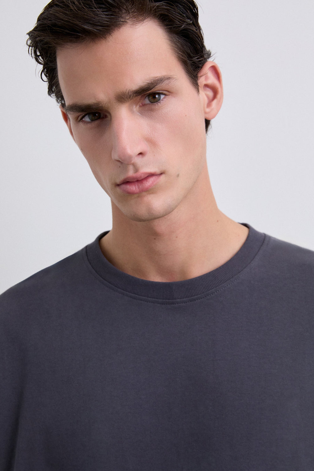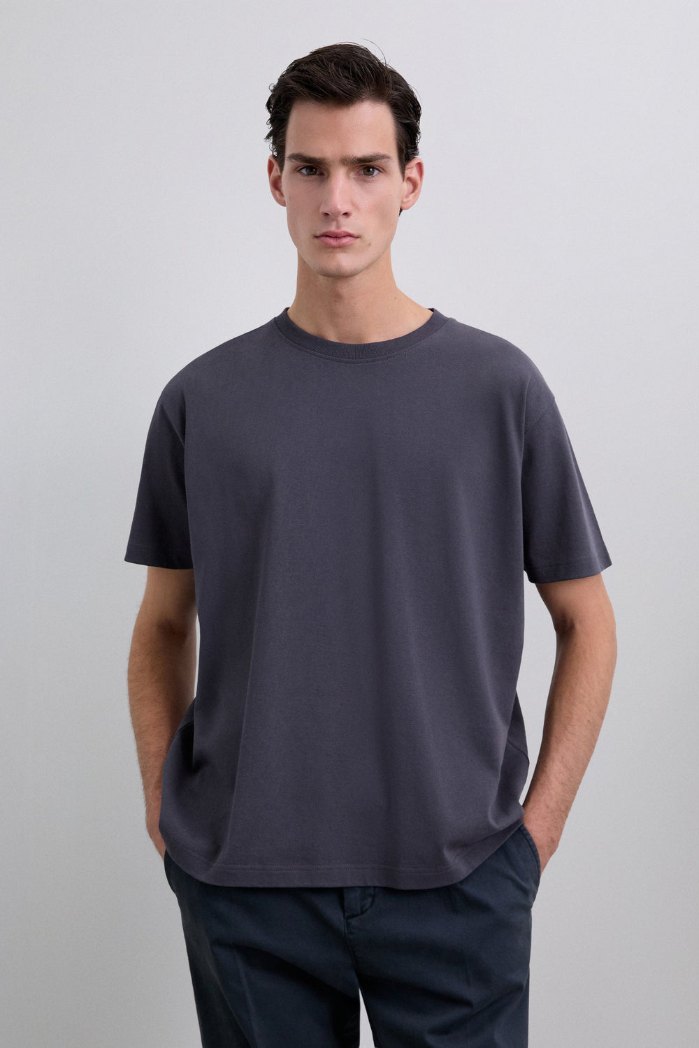 T-shirt made of 100% organic cotton. Short Sleeve. Round neck. Boxy fit. Ribbed trim.
