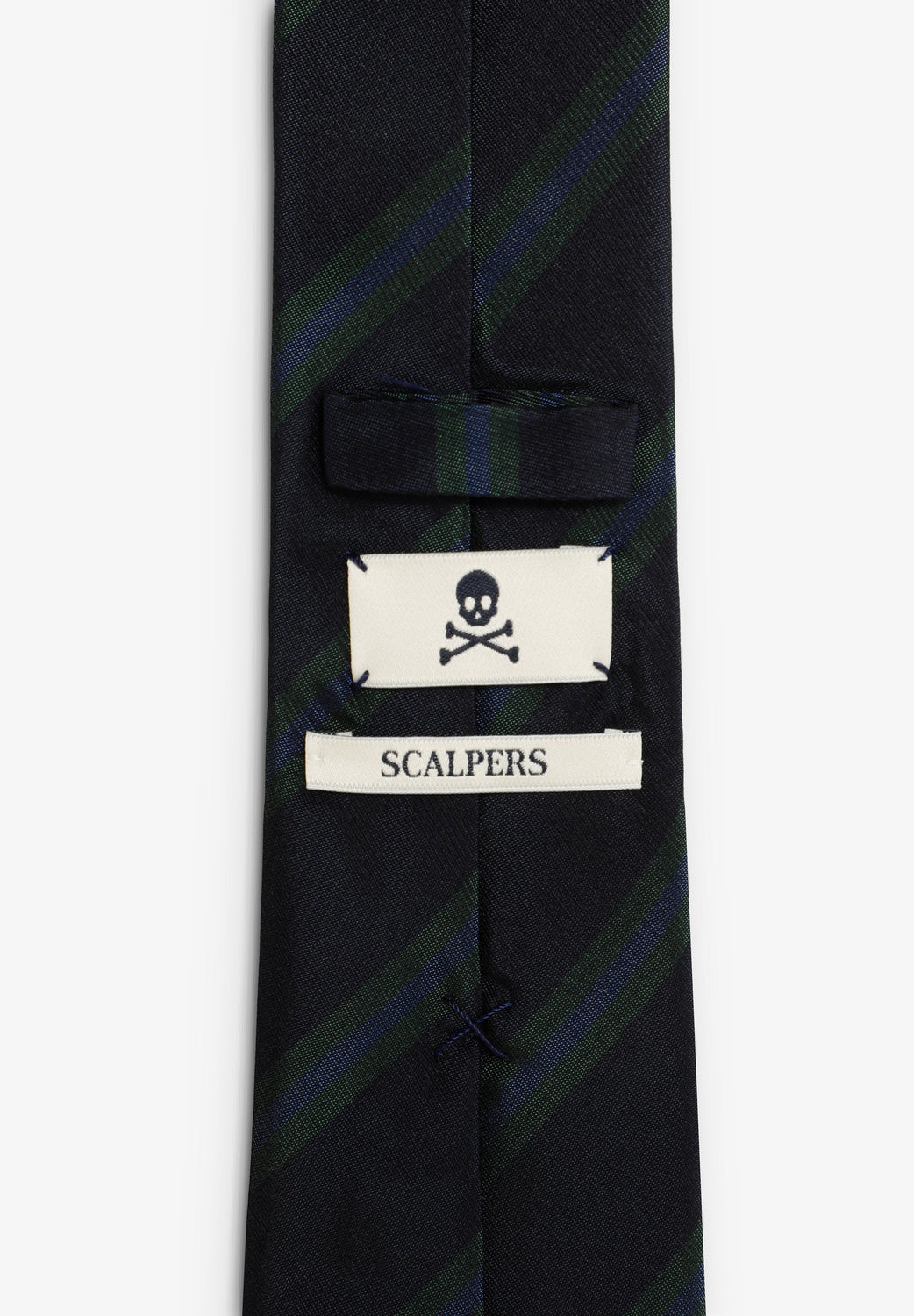 Striped tie made from 100% silk. 7.5 cm wide blade.