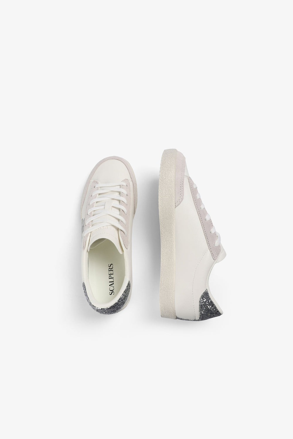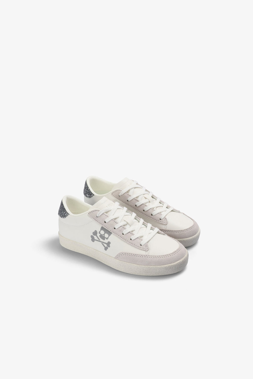 Low top sneakers with contrast side skull. Rubber sole. Lace-up fastening. Contrast glitter heel.