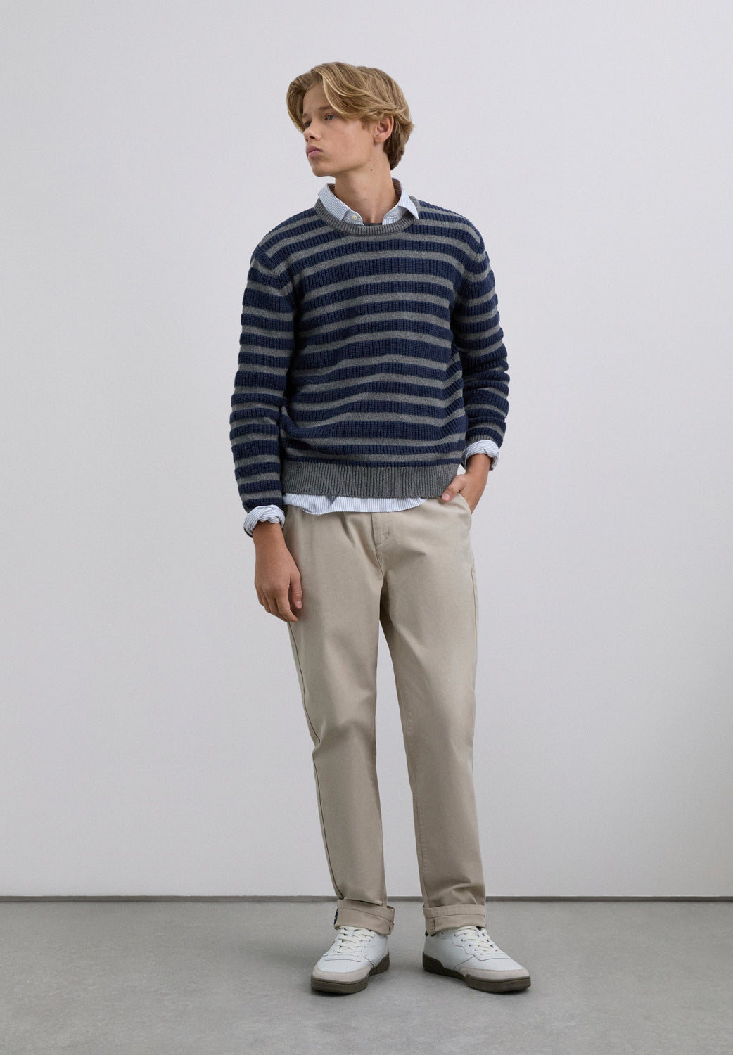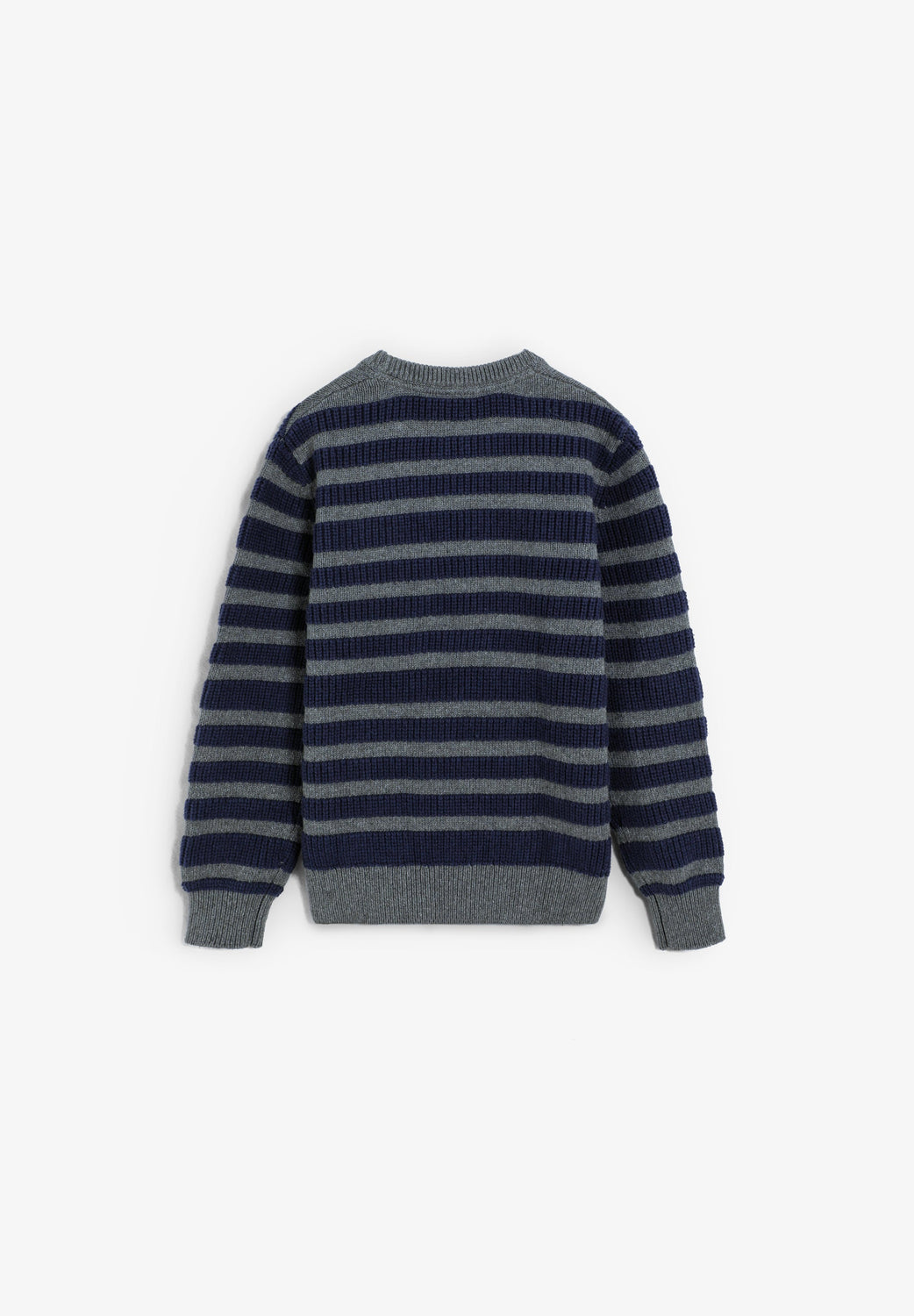 Sweater made of 100% BCI cotton. Stripe print. Round neck. Long sleeves. Ribbed trim.