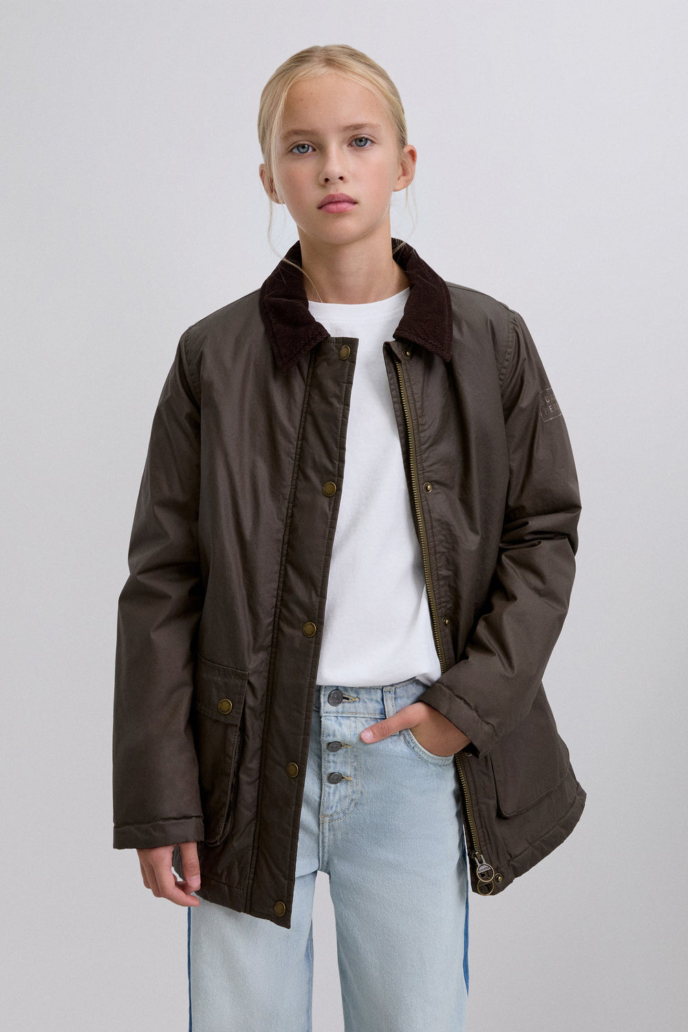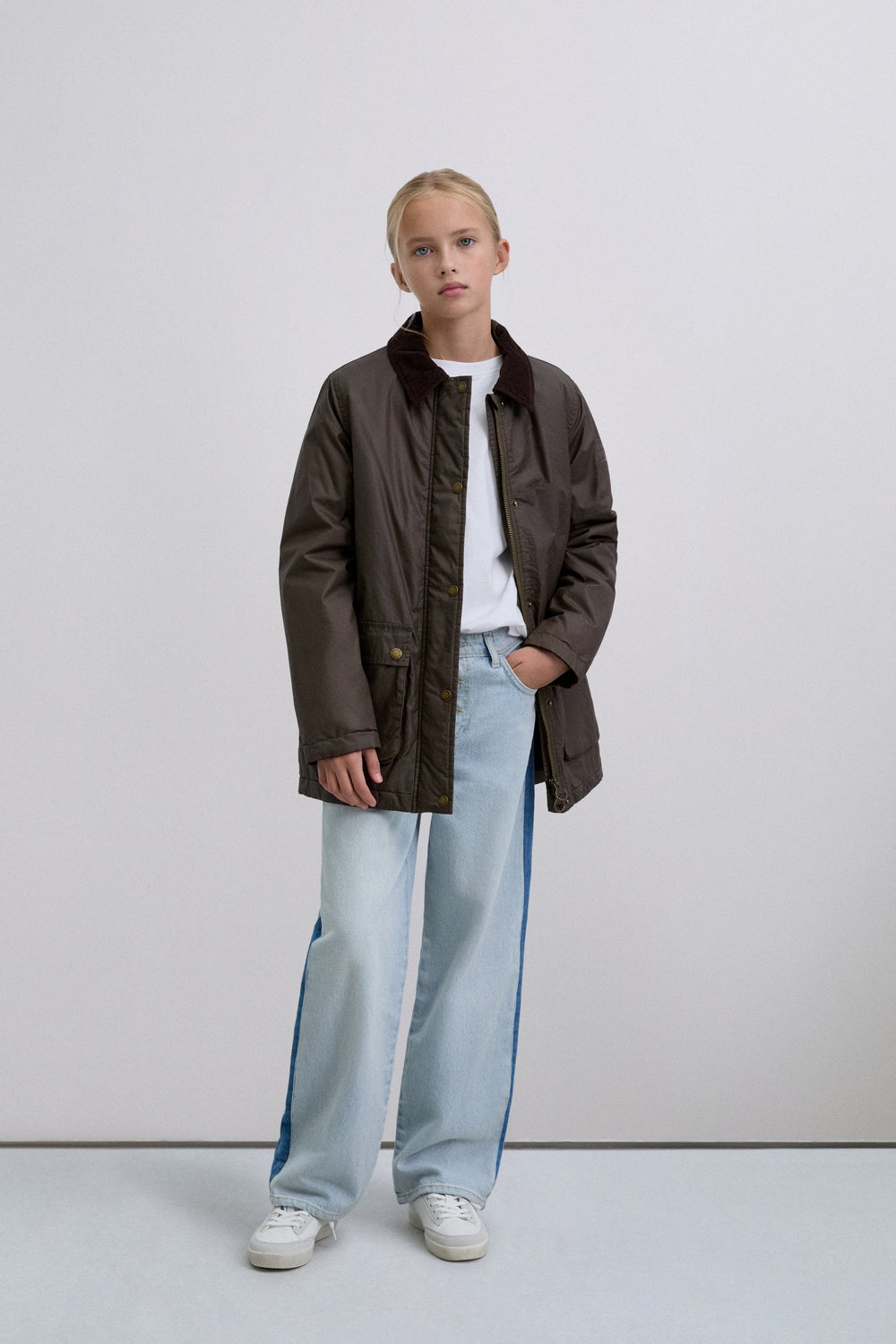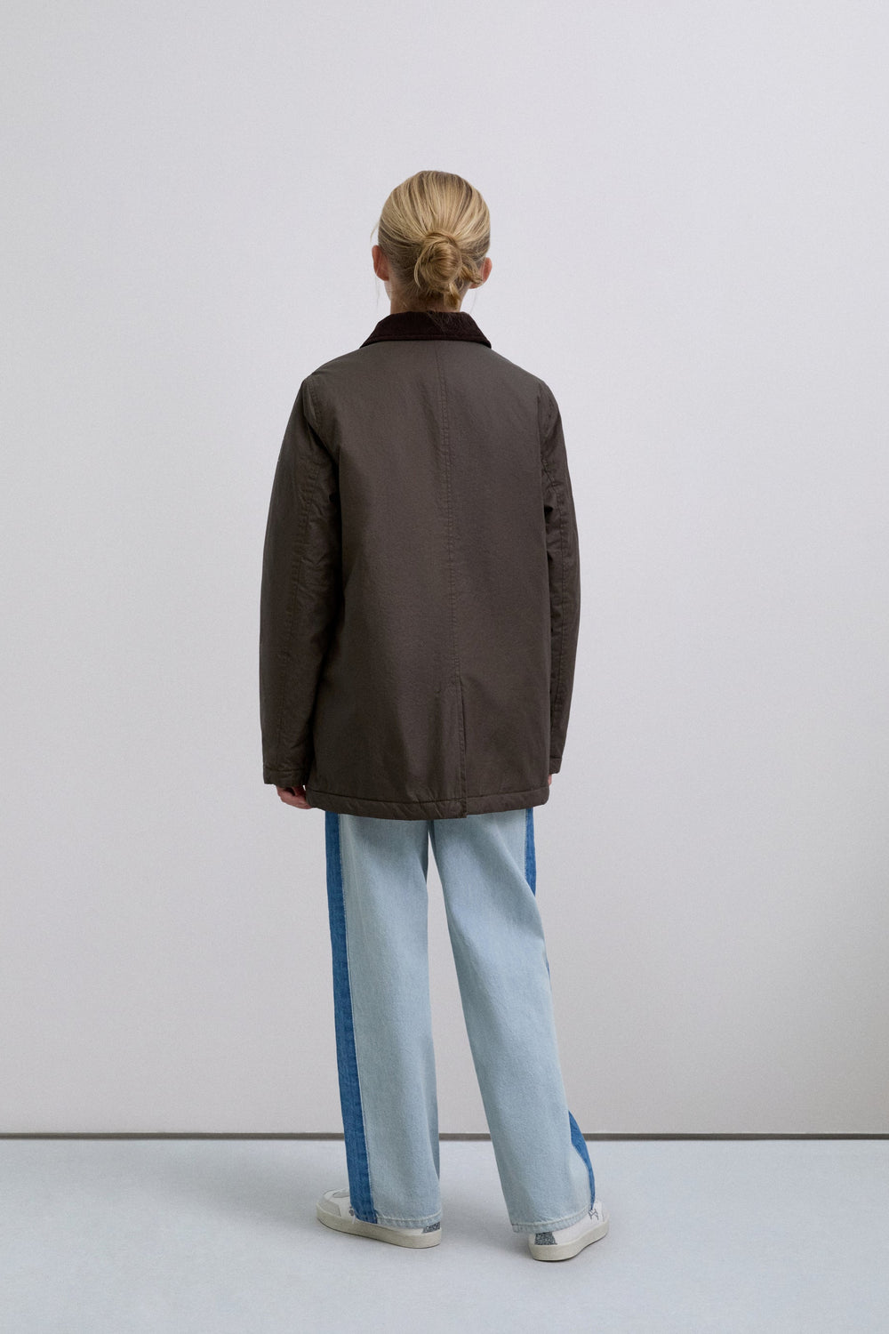 Jack gemaakt van 100% BCI-katoen. Contrasterende overhemdkraag. Lange mouw. Twee voorzakken met klep en knoopsluiting. Sluiting aan de voorkant met knoopbies. Logoprint op de mouw.